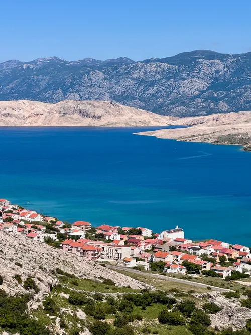 Admirez le panorama à couper le souffle de l'Adriatique depuis Pag Island View, perché sur une colline rocheuse surplombant le paysage lunaire de Pag. Ce point de vue offre un contraste saisissant entre les pentes de calcaire blanc, les eaux cristallines et les marais salants révélant les traditions séculaires de l'île. Préparez votre appareil photo pour des clichés inoubliables au lever ou au coucher du soleil, lorsque de doux rayons baignent la baie de teintes chaleureuses. À proximité, goûtez le fromage emblématique de Pag et la dentelle délicate, ou flânez dans d'anciennes rues pavées pour explorer l'histoire locale. Des chaussures confortables sont indispensables pour explorer les environs rocheux. La combinaison d'un terrain austère et d'une mer scintillante crée une scène postale inoubliable pour les voyageurs en quête des trésors cachés de Croatie.