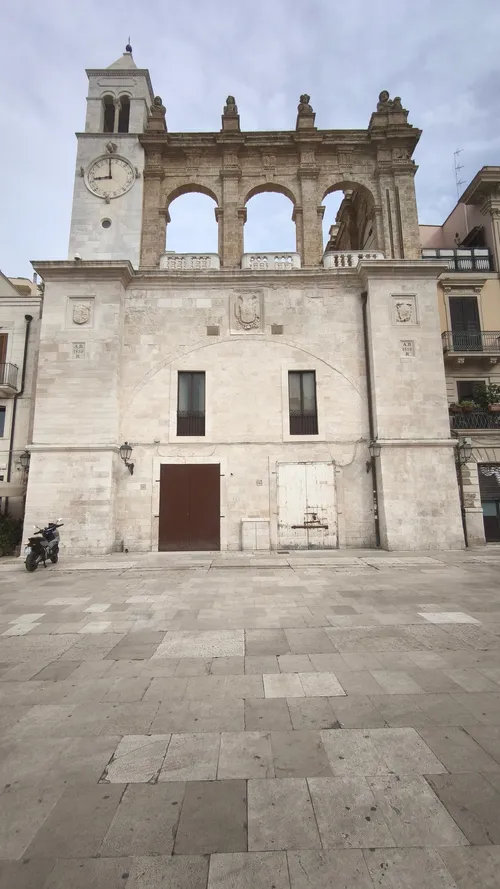 Le Palazzo del Sedile se trouve au cœur de la vieille ville de Bari, près de Piazza Mercantile, reflétant la riche histoire et l'évolution de la gouvernance de la ville. Construit au XVIe siècle, il a servi de siège officiel de l'administration locale, accueillant les réunions du conseil et les procédures judiciaires. Sa façade affiche des influences de la Renaissance, tandis qu'une haute tour de l'horloge orne l'édifice, symbole de la fierté civique de la ville. À distance de marche se trouvent la basilique de San Nicola et le Fortino de Saint Antoine, offrant ainsi un itinéraire complet à la découverte des ruelles sinueuses, des églises historiques et des restaurants de fruits de mer de Bari Vecchia. Bien que le bâtiment ne soit pas toujours accessible au public, son extérieur offre un aperçu du passé remarquable de Bari.