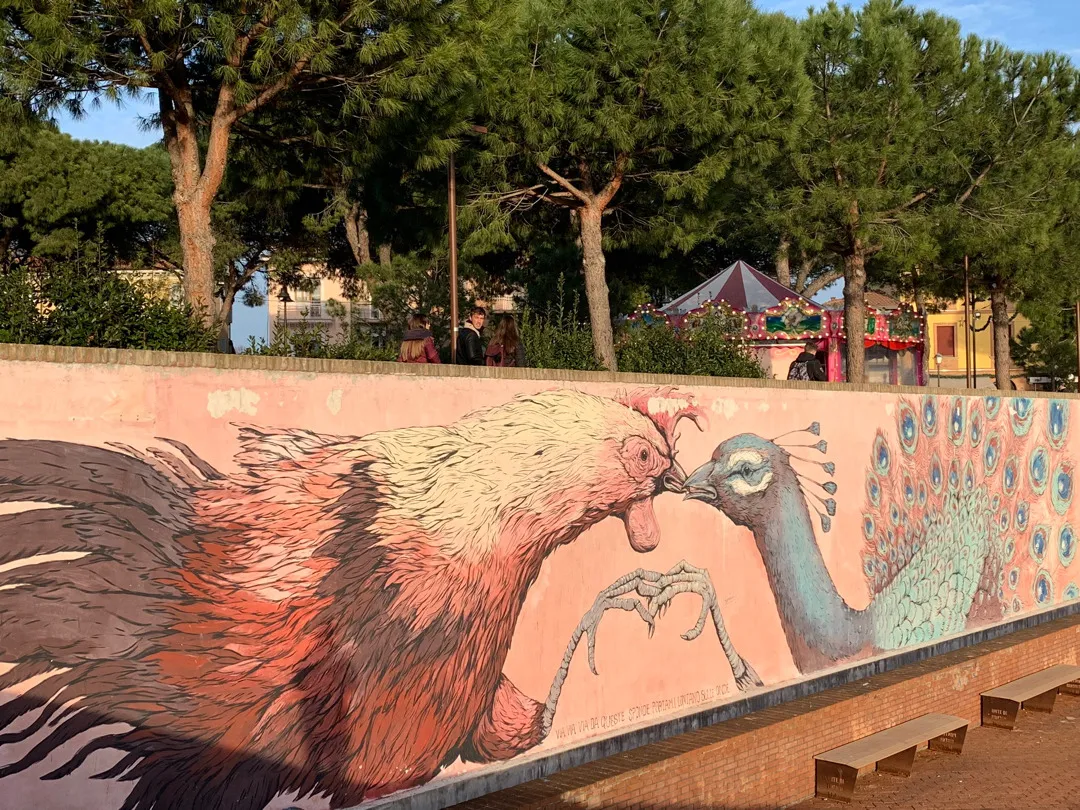 La Piazza Sull'Aqua est une belle place située à Rimini, en Italie, sur la promenade du front de mer. Il est situé entre le vieux centre-ville, avec ses bâtiments et monuments historiques, et la côte Adriatique. La place aérée et spacieuse est toujours remplie de gens qui se promènent, discutent et profitent de la brise marine. D'un côté de la place se dresse la grande porte de style classique du XVIIe siècle du Palazzo del Comune, ornée de statues représentant des dieux mythologiques et des vertus féminines. De l'autre côté se dressent les ruines du Castel Sismondo, un château du XVe siècle. La pièce maîtresse de la place est une grande fontaine comportant six dauphins en bronze virevoltant autour d'une grande structure circulaire. C’est un endroit idéal pour faire une pause autour d’un cappuccino ou d’un sandwich, ou pour capturer le coucher de soleil sur la mer Adriatique.