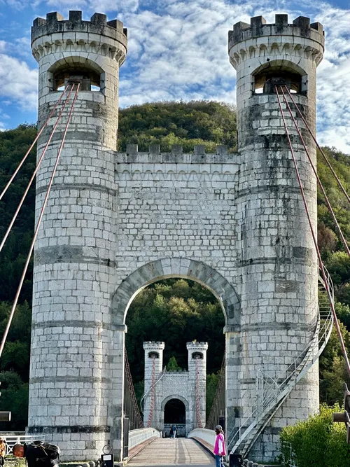 Surplombant le spectaculaire canyon du fleuve Usses en Haute-Savoie, le Pont de la Caille (ou Pont Charles-Albert) est un pont suspendu du 19e siècle offrant de vastes panoramas alpins. Autrefois réservé aux charrettes, il propose désormais une promenade piétonne sécurisée surplombant des eaux profondes. Construit en 1839, il témoigne d'une ingénierie française pionnière, remarquablement préservée. À proximité, un pont moderne gère le trafic actuel, laissant l'original aux voyageurs en quête de charme historique et de superbes opportunités photo. Situé entre Genève et Annecy, il est idéal pour une courte pause panoramique avant d'explorer les lacs, montagnes et villages pittoresques de la région.