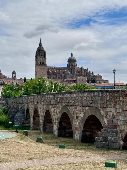 Le Puente Romano de Salamanque est un magnifique pont romain qui enjambe la rivière Tormes, construit au Ier siècle après J.-C. Idéal pour la photographie à l'aube ou au coucher du soleil, le pont offre des vues époustouflantes de la cathédrale de Salamanque et de la silhouette historique de la ville. Ses 15 arches originales parfaitement préservées sont juxtaposées à des ajouts plus récents, offrant un contraste saisissant. Le pont est mieux accessible depuis la rive sud pour une prise de vue panoramique englobant à la fois le pont et la ville. C'est aussi une zone piétonne, assurant des compositions sans perturbation. À proximité, le jardin Huerto de Calixto y Melibea offre un décor supplémentaire, surtout pendant les mois de printemps et d'été.