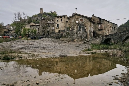 Puente San Miguel est un lieu magnifique situé à Montañana, en Espagne. Ce beau pont médiéval enjambe la rivière Bulones et est encadré de chaque côté par des maisons blanchies à la chaux et des collines verdoyantes. Construit au milieu du XVIIIe siècle, l'arche du pont atteint une hauteur de 25 mètres, ce qui lui confère une présence impressionnante et féerique dans le paysage. Sur la rive gauche du pont se trouve un moulin pittoresque, un rappel des temps révolus. Puente San Miguel est un endroit populaire pour les randonneurs, car le terrain entourant le pont est parsemé de pentes douces, d'arbres ombragés et de ruisseaux sinueux, ce qui en fait un lieu idéal pour se détendre et explorer la nature. Vous ne voudrez pas manquer l'occasion de capturer la beauté à couper le souffle de Puente San Miguel dans toute sa gloire subtile, mais captivante.