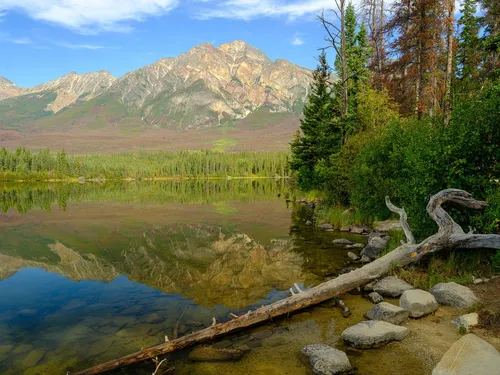 Accessible par un court pont piétonnier en bois, l'Île de la Pyramide offre un refuge paisible sur le calme lac Pyramid du parc national Jasper. Entourée d'eaux vierges reflétant les majestueux sommets des Rocheuses canadiennes, cette petite île est idéale pour la photographie panoramique et les promenades tranquilles. Un sentier en boucle fait le tour de l'île, offrant des vues spectaculaires à chaque tournant. La faune locale est fréquente, pensez à repérer wapitis et plongeons. Des tables de pique-nique et des bancs invitent les visiteurs à admirer ce paysage époustouflant, tandis que l'air frais de la montagne apporte une sensation de renouveau. Les matins et soirées offrent un éclairage magique, parfait pour capturer des clichés dignes d'une carte postale.