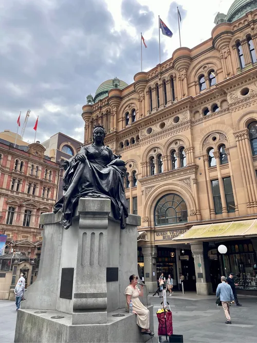 Le Queen Victoria Building à Sydney, Australie, est un bâtiment de l'époque victorienne qui est maintenant un centre commercial. Il a été ouvert pour la première fois en 1898 et a été conçu dans le style roman. Il est situé dans le cœur historique de Sydney et est une destination touristique populaire. Il y a de nombreux magasins, cafés, galeries d'art et restaurants à l'intérieur. Il y a aussi quelques autres attractions, comme l'Horloge du Grand Hall et les sculptures de l'Empire Court. Les visiteurs peuvent admirer le bâtiment sous différents angles en empruntant les escalators et le grand escalier situés à l'intérieur. Faire du shopping, manger et flâner sont les activités principales ici, cependant, il y a aussi occasionnellement des événements et des spectacles.