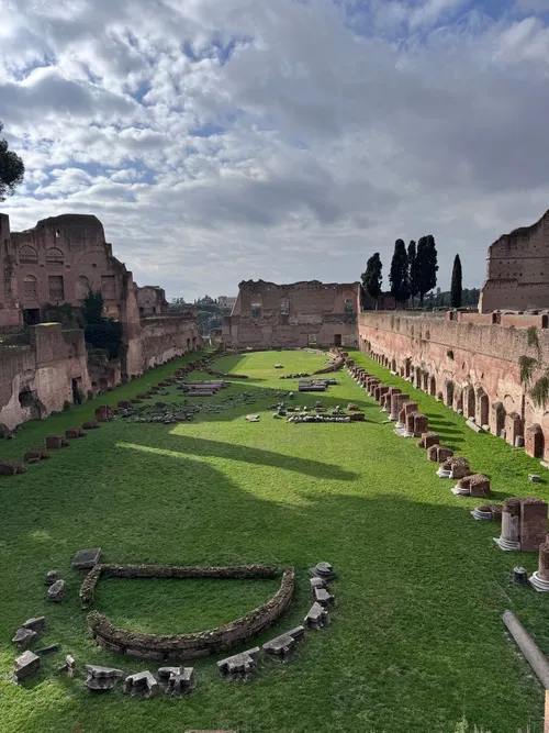 Construit à la fin du Ier siècle après J.-C., le Stadio Palatino se situe sur le mont Palatin dans le cadre du Domus Augustana, commandé par l'empereur Domitien. Cette arène allongée, souvent appelée l'Hippodrome de Domitien, servait de lieu privé pour les compétitions athlétiques et les spectacles somptueux. Aujourd'hui, les visiteurs peuvent explorer ses vestiges intrigants, dont le jardin central, entouré de hauts murs et d'arcs. Admirez des vues panoramiques sur le Circus Maximus et la ville depuis des points élevés. L'entrée est généralement incluse dans le billet combiné Palatin, Forum et Colisée. Portez des chaussures solides pour parcourir les anciens chemins et envisagez une visite guidée pour découvrir la vie impériale romaine.