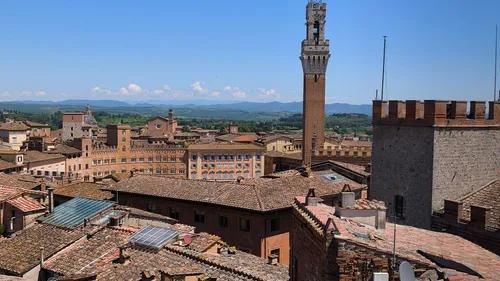 La Torre del Mangia est une tour médiévale emblématique située au cœur de Sienne, en Italie, à côté du Palazzo Pubblico dans la célèbre Piazza del Campo. D'une hauteur de 102 mètres, elle a été construite entre 1338 et 1348 et figure parmi les plus hautes tours laïques d'Italie. Son nom, signifiant « Tour du Mangeur », fait référence avec humour à son premier sonneur de cloches, réputé pour son amour de la nourriture. Architecturale, elle incarne le style gothique, avec sa façade en briques et pierres qui s'harmonise avec le paysage historique de la ville.