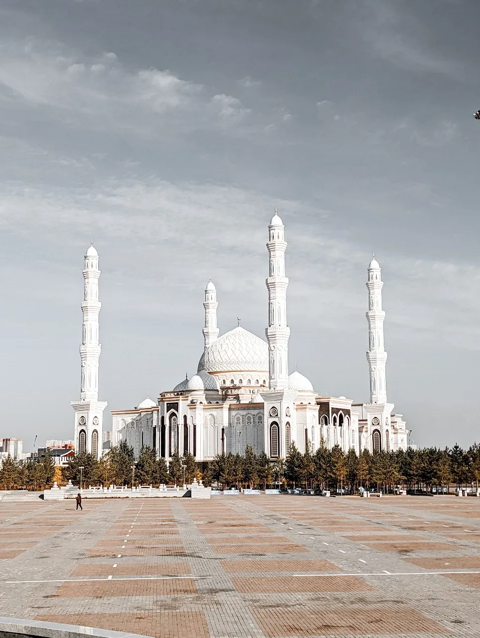 Masjid Hazrat Sultan terletak di Astana, Kazakhstan. Ini merupakan contoh arsitektur Islam modern yang mengesankan dan indah. Masjid ini terbuat dari marmer dengan kubah besar dan empat menara. Ini adalah masjid terbesar kedua di Asia Tengah, mampu menampung hingga 5.000 jemaah. Ukiran rumit pada marmer dan pola di dinding menonjolkan detail arsitektur yang halus. Bagian dalamnya dilengkapi dengan lampu gantung indah, dan lantainya dihiasi dengan karpet berwarna-warni. Masjid ini juga memiliki perpustakaan dan akademi yang menawarkan kelas tentang studi Al-Qur'an, hukum Islam, sejarah, dan budaya. Masjid Hazrat Sultan adalah contoh luar biasa arsitektur Islam dan destinasi wisata yang fantastis, di mana pengunjung dapat mengagumi keindahan tenang dan keahlian dalam pembangunannya.