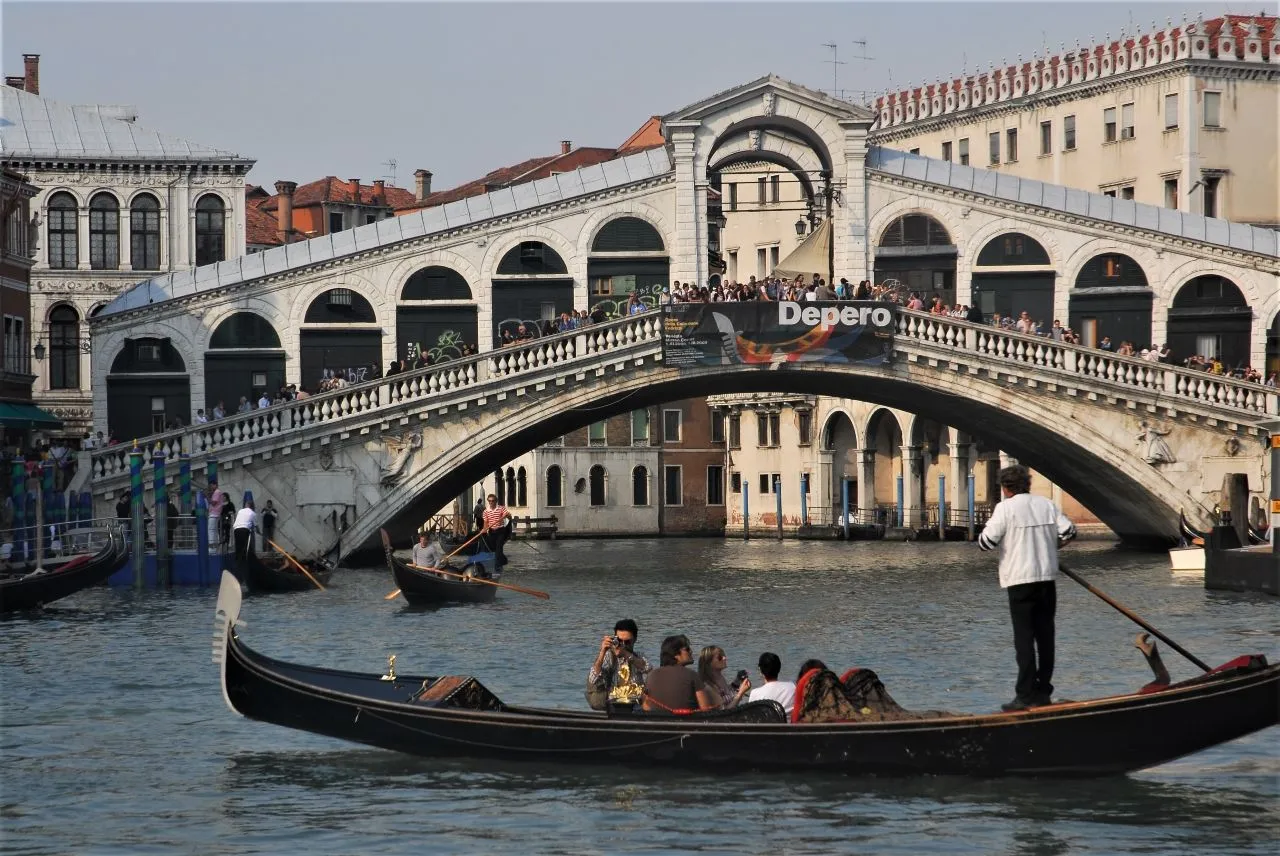Jembatan Rialto adalah jembatan ikonik di atas Grand Canal di kota Venesia, Italia. Salah satu pemandangan ikonik kota ini, jembatan ini memiliki sejarah panjang, dengan struktur kayu pertamanya berasal dari abad ke-12. Telah dibangun ulang beberapa kali, dan versi saat ini dibangun pada abad ke-16. Saat ini, jembatan ini menjadi destinasi populer bagi wisatawan dan fotografer, karena merupakan tempat yang sempurna untuk menikmati pemandangan kota yang menakjubkan sambil mendapatkan kesempatan foto yang bagus. Ini adalah simbol kota dan wajib dikunjungi bagi siapa saja yang berkunjung ke Venesia.