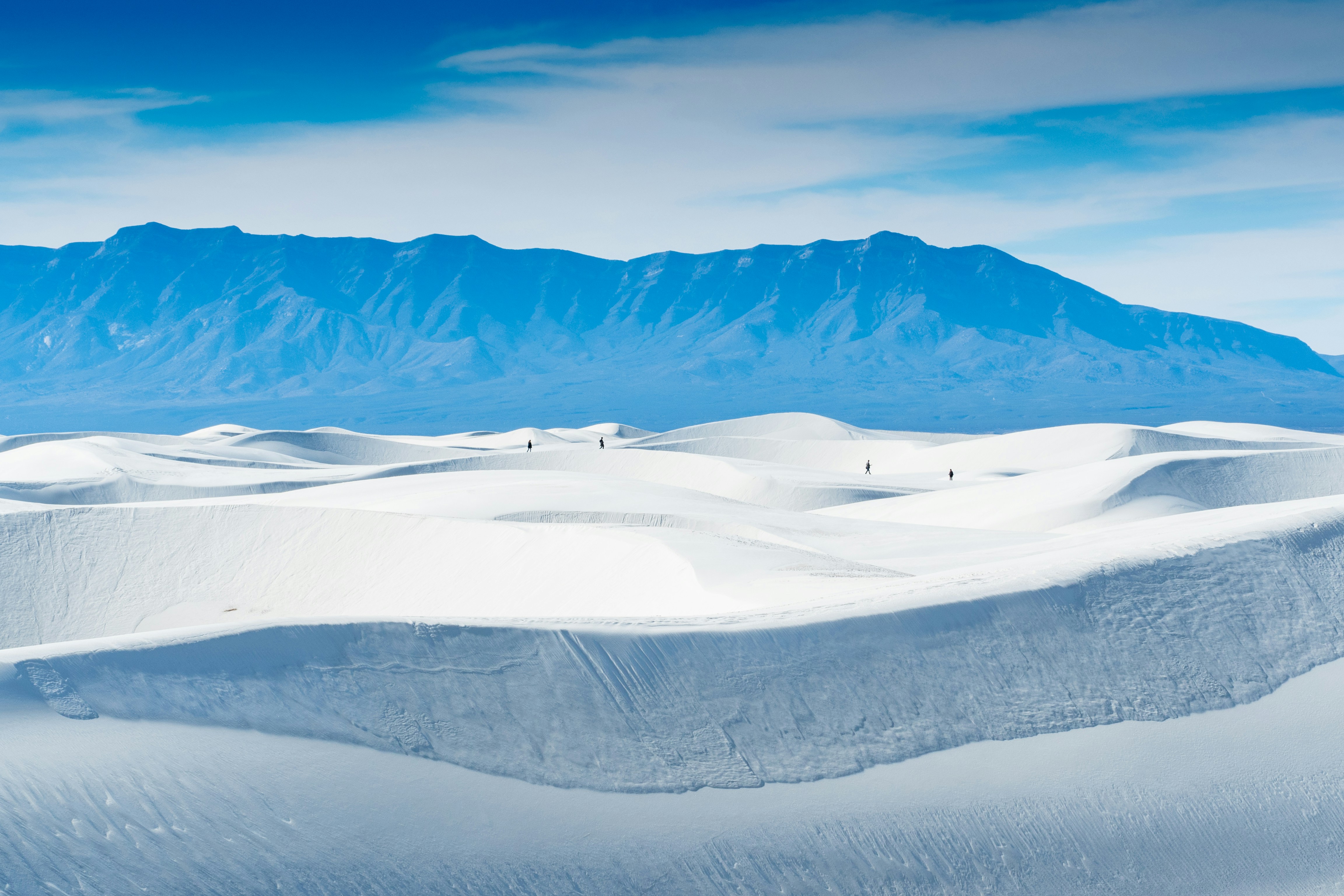 White Sands, yang terletak di Holloman Air Force Base di AS, adalah wilayah seluas 270 mil persegi dari bukit pasir gipsum putih, menjadikannya salah satu lapangan bukit pasir gipsum terbesar di dunia. Dikunjungi ribuan turis setiap tahun, tempat ini tampak tak berujung dengan punggungan pasir putih yang tertiup angin dan partikel gipsum menyerupai gumpalan salju. Kunjungan ke White Sands memungkinkan Anda merasakan suasana gurun, dikelilingi oleh puncak-puncak tinggi yang dihiasi kaktus dan ocotillo. Saat menjelajahi bukit pasir yang luas, Anda memiliki banyak kesempatan untuk mengeksplorasi alam, menikmati pendakian bukit pasir yang indah, dan merasakan kedamaian gurun. Ini adalah tujuan ideal bagi mereka yang menginginkan pelarian damai dan petualangan alam liar.