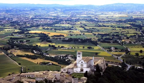 Basilíkan Superiore di San Francesco d'Assisi, meistara verk miðaldra arkitektúr, er þekkt fyrir stórkostlegu freskurnar eftir Giotto sem lýsa lífi heilaga Frants. Ljósmyndaraðilar ættu ekki að missa af því að fanga flókna framhlið og litrík freska innan, sem krefjast vandvirkra lág-ljóseininga samkvæmt reglum um innhúsalýsingu. Staðsetning basilíkunnar á hæðinni býður upp á víðútsýni yfir landslag Umbríu, sem hentar víðsýndarfótum, sérstaklega á miðjusólarupprás eða sólsetur þegar ljósið mýkist. Mundu að virða hinn helga andrúmsloft; þrífótar geta verið takmarkaðir, svo vertu viss um að myndavélin þín sé búin fyrir handhaltna drátt. Ljósspeglunin í gegnum mursteinaglerið skapar töfrandi andrúmsloft innandyra, áskorun en samt verðugtt efni fyrir ljósmyndafólk sem vill fanga andlegan kjarna sögulegs minnis.