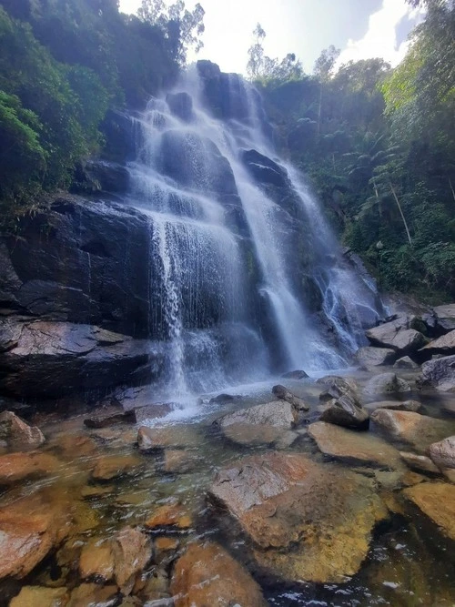 Cachoeira Véu da Noiva (Brúðarhjúpsfossið) er fallegt foss í gróðurvaxinni náttúru Itatiaia þjóðgarðsins í Brasilíu. Áhrifamikla 30 metra hrap fossins er stórkostleg sýn sem laðar göngumenn og ljósmyndara frá öllum heimshornum. Frá áhorfningsstaðnum fyrir fossið færðu stórbrotið útsýni yfir brosandi vatnið. Leiðin að fossinum er fullkomin fyrir göngumenn þar sem hún liggur um náttúrufegurð þjóðgarðsins. Það er einnig mikilvægt að hafa í huga að garðurinn býr yfir ríku líffræðilegu lífi, með mörgum áhugaverðum dýrum og plöntum til að uppgötva. Njóttu útsýnisins og vertu á varðbergi!