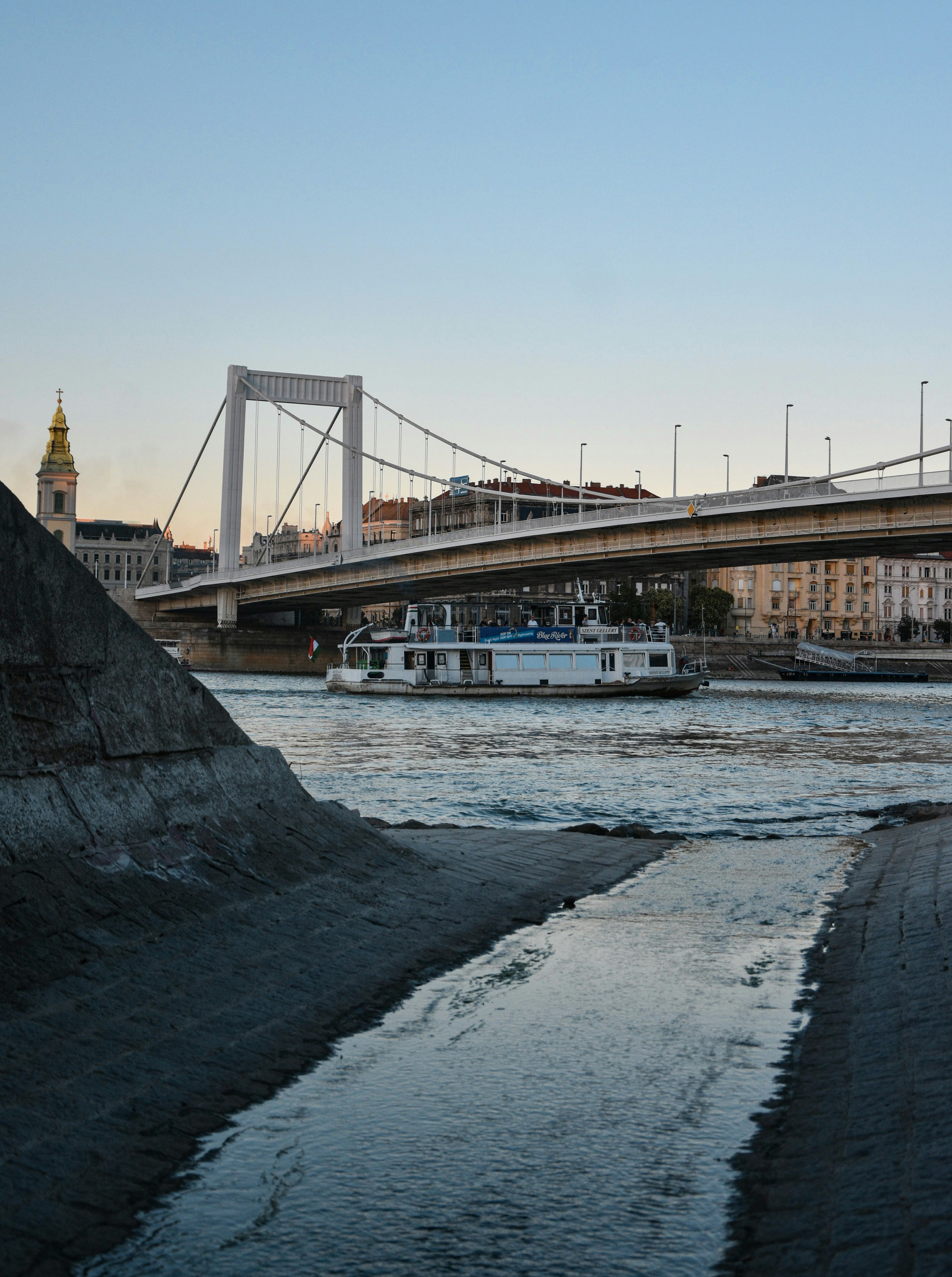 Erzsébetbrúin, einnig kölluð Elizabethbrú, nær yfir Doninn í Búdapest og tengir Buda og Pest. Hún var hönnuð af Adam Clark og byggð á milli 1897 og 1903. Sem hluti af Chain Bridge fjölskyldunni hefur hún einstaka hönnun með fjórum glæsilegum stoðum. Hún býður upp á stórkostlegt útsýni yfir borgarlínuna um daginn og nótt, og brúin er lýst með glæsilegum ljósasýningu frá apríl til október. Á göngbrautunum hennar eru sölustöðvar og veitingastaðir, sem gera hana vinsæla meðal heimamanna og ferðamanna. Erzsébetbrúin gæti verið besta leiðin til að komast yfir Doninn með stíl.