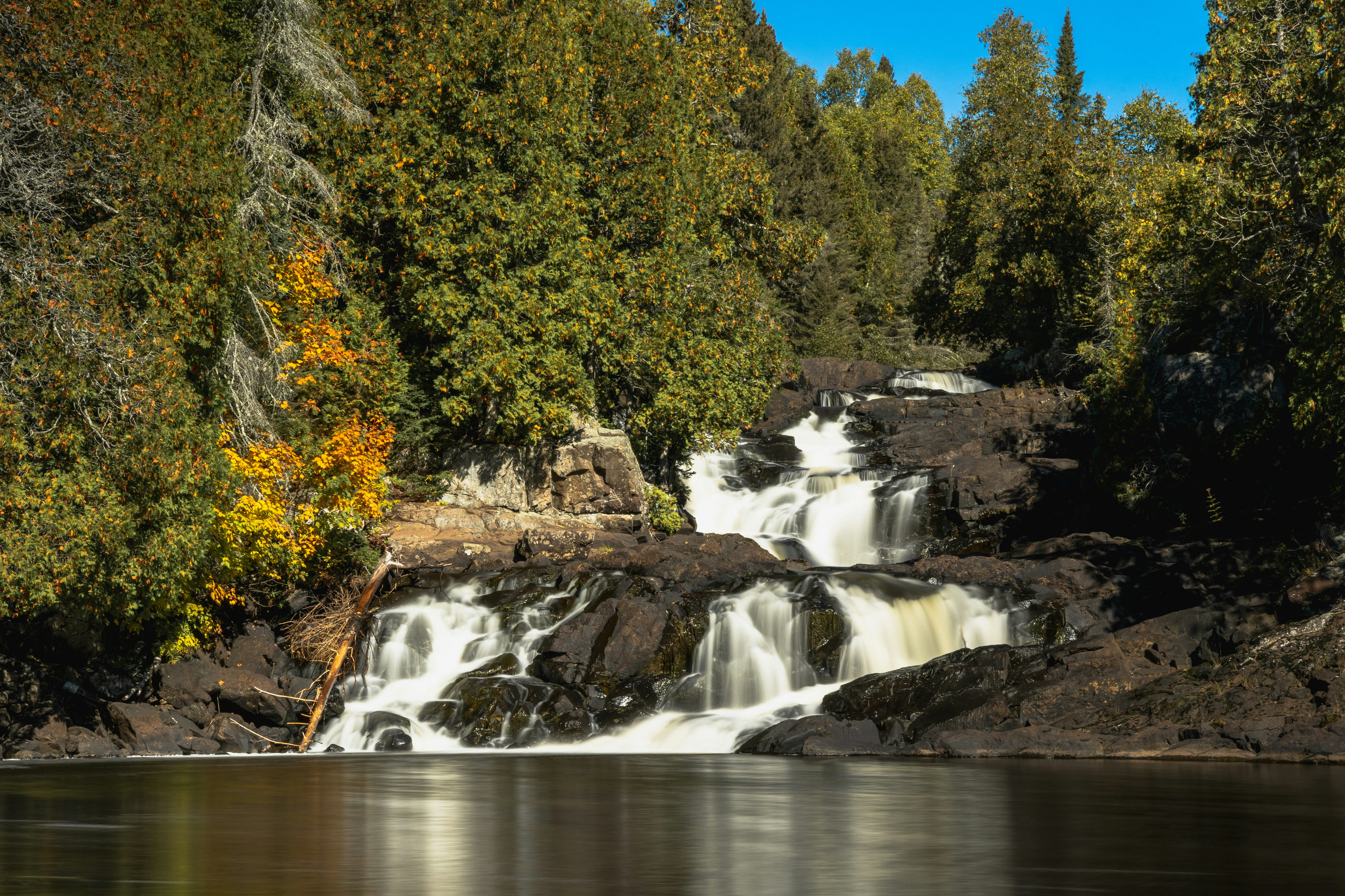 Manitou Falls, staðsett í litla Minnesota bænum Little Marais, Bandaríkjunum, er töfrandi að sjá. Föllin er hægt að skoða með pallstíg eða aðgengilegu útsýnisstað. Útsýnið batnar af litlu strönd og gróskumiklum hnoðum sem bæta við stórkostlega sjónrænni fegurð. Þessi afskekkti staður er óás náttúrulegs fegurðar, fullkominn til að eyða nokkrum tímum í göngu, fuglaskoðun, sundi og píkník. Njóttu dagsins að kanna heillandi Manitou Falls og mundu að taka myndavélina – þú vilt ekki missa af þessum fallega stað!