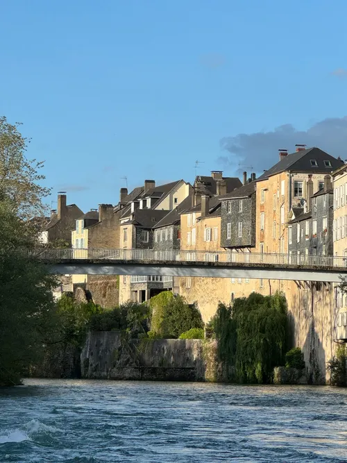 Pont Sainte-Marie í Oloron-Sainte-Marie, sem liggur við fótfjöll Pyreneyja í Frakklandi, er myndræn steinbrúa sem býður óviðjafnanlegt útsýni yfir miðaldararkitektúr á bak við gróandi landslag. Brúan teygir sig yfir áinn og þessi forna bygging, með rætur sínar í rómverska tímabilinu, hefur verið endurnýjuð um aldir og endurspeglar sögulega þróun. Fyrir ferðamenn með myndavél eru brúin og umhverfi hennar fjársjóður af fallegum sjónarmiðum, sérstaklega snemma á morgnana eða síðdegis þegar mjúkt ljós dregur fram steintegundir hennar og spegilmynd árinnar. Í nágrenni getur sameining Aspe- og Ossau-ára bætt við dýnamískum þáttum í myndum, á meðan Cathedral Sainte-Marie, sem er á UNESCO heimsminjaskrá, sýnir glæsilega blöndu af rómönsku og gotnesku stílum, aðeins stuttan spadagsgang frá staðnum. Haustið færir með sér áberandi litasamsetningu, sem gerir það að kjörnum tíma til að fanga náttúrulegan og byggingarstíl samhljóm þessa staðar.