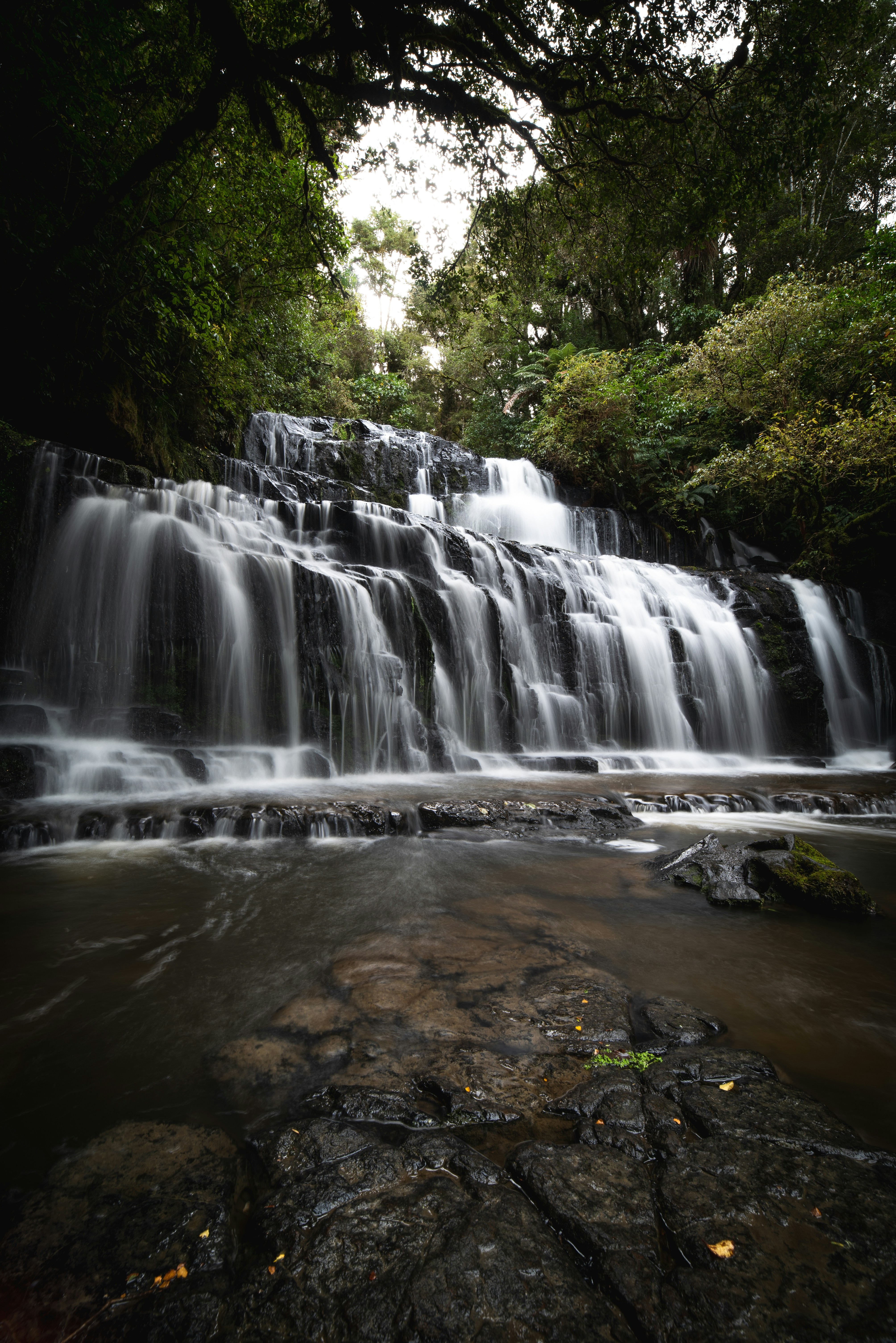 Fossar Purakaunui eru töfrandi sjón í suðvesturhorninu á Catlins-svæðinu á Nýja Sjálandi. Staðsettir í einangruðu, gróðursríku heimaskógi, eru þeir einir af hreinu og fallegustu fossum landsins. Fossarnir falla samtals 52 fet í þremur lögum, þar sem stærsti fellinn er 28 fet. Sérstakar útsýnisstaðir bjóða upp á stórkostlega útsýni yfir alla fossana, sem gerir þá ómissandi ef þú ert hér. Umhverfið er paradís fyrir ljósmyndara með fjölbreyttum tegundum heimatryggra plantna og villta blóma, ásamt fjölbreyttu fuglalífi, sem bjóða upp á frábæra ljósmyndatækifæri. Svæðið býður einnig upp á áhrifamikla 230 metra gönguleið með fallegu landslagi fyrir þá sem vilja leggja smá viðleitni að fullkomnu skoti.