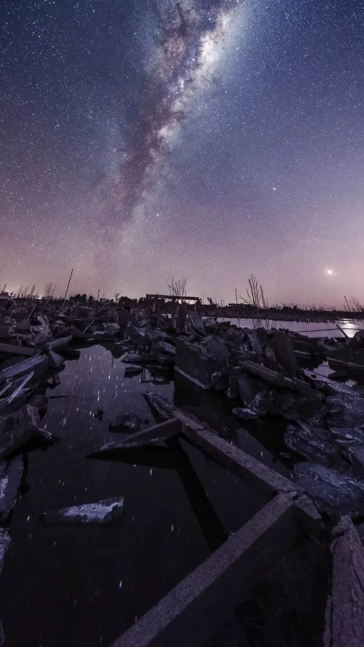 Rústir Carhué og Vatns Epecuén í Villa Epecuén, Argentínu, bjóða upp á einstakt og stórkostlegt landslag. Gestir geta komist nálægt stórkostlegum rústum fyrrverandi Carhué-hótelsins, umkringdum af risastóru og kyrrt vatni þar sem sjóndeildarhringurinn mætir himninum. Farþegar geta dáðst að ró vatnsins og friði þeirra trjálína sem hafa verið afskógaðar í kringum svæðið. Heimsókn á strönd vatnsins býður upp á áhugaverða innsýn í það ótrúlega breytilega landslag, á meðan að leita að skeljum og steinum sem hafa komið í ljós með því að vatnið er dregið aftur.