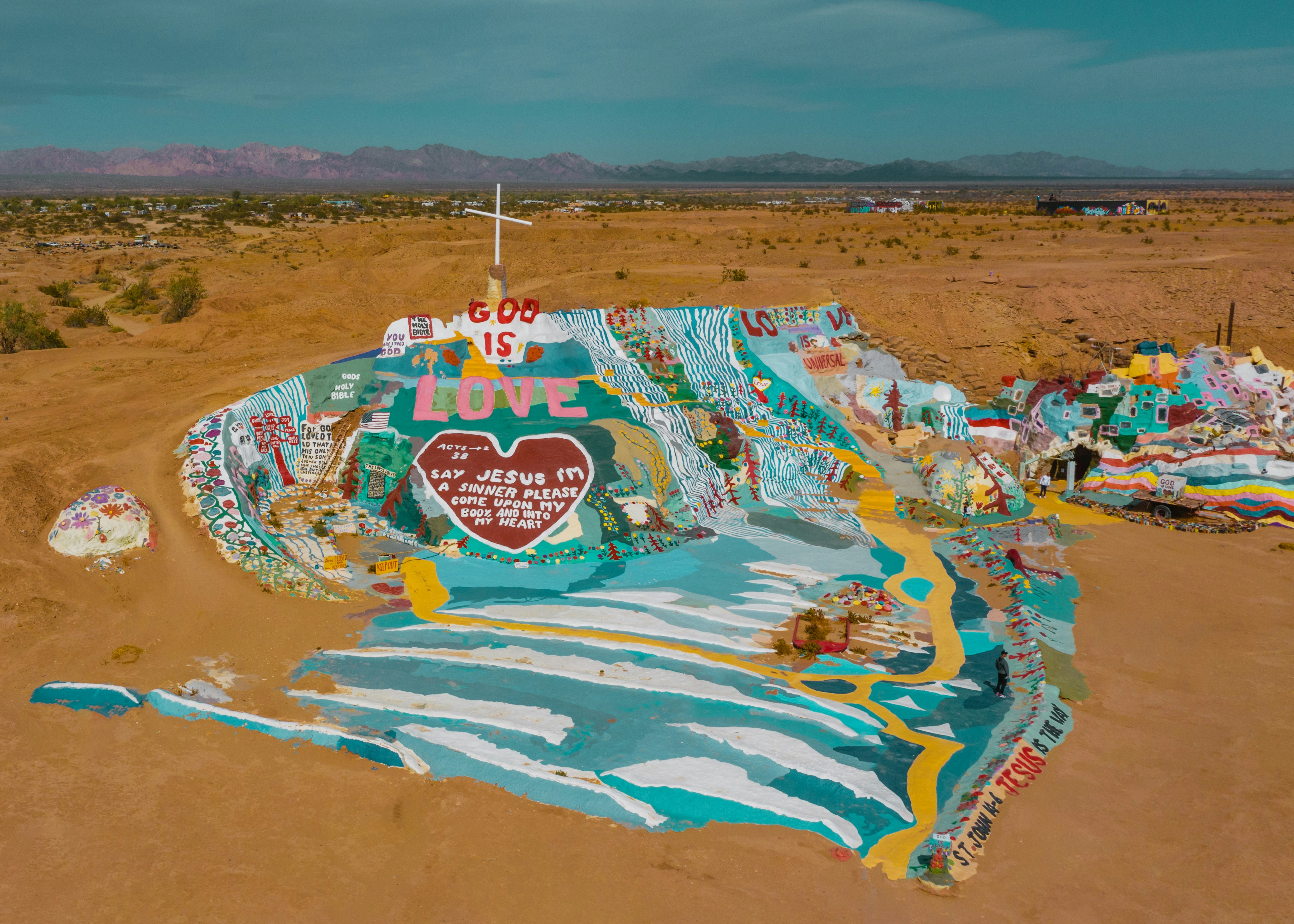Salvation Mountain er táknmynd eyðimörk landslags Bandaríkjanna, staðsett í Imperial County, Kaliforníu. Fjallið er þakið björtum, litaðum spónatriði og nær heim handamáltra biblíubyltinga og trúarlegra orða. Skapari þess, Leonard Knight, eyddi yfir þremur áratugum lífs síns í nálægu Slab City við að umbreyta fjallinu í líflegt, litrætt og kraftmikilandi folk listaverk. Gestir sem þekkja sögu staðarins upplifa blöndu af gleði, dýrð og virðingu á meðan þeir kanna ýmsa stíga og biblíuyfirskriftir. Fyrir ferðamenn, ljósmyndara og náttúruunnendur er Salvation Mountain ómissandi áfangastaður á Vesturströnd Bandaríkjanna.