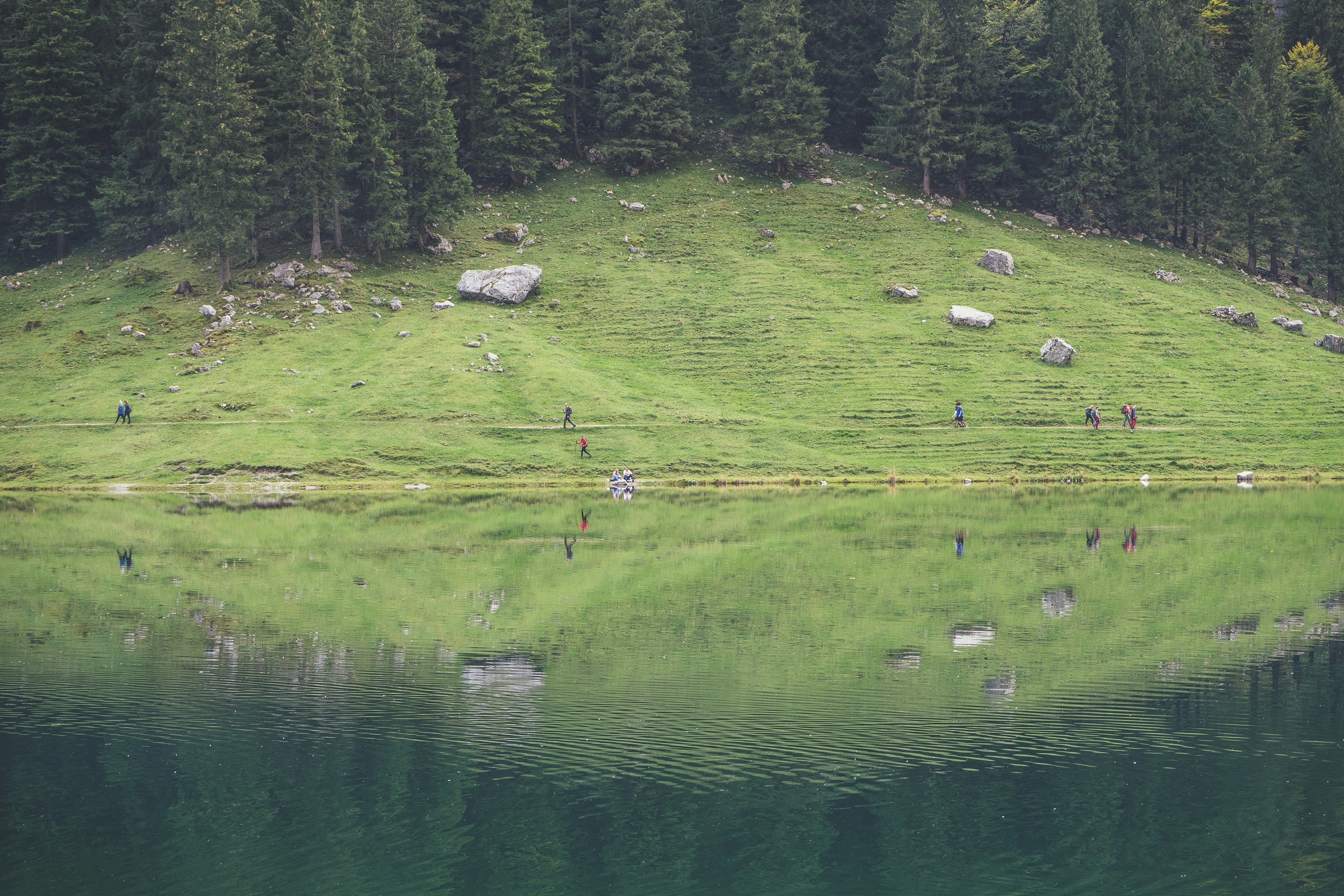 Seealpsee (einnig þekkt sem Seealp Vatnið) er stórkostlegt náttúrulegt vatn umkringt grænum engjum í Schwende-Rüte, Sviss. Það er hluti af Appenzell-ölunum, einu af fallegustu fjallkeðjum Sviss. Vatnið er vinsæll staður fyrir útiveru, þar á meðal sund, veiðar og gönguferðir. Engirnir eru fullir villra blóma, sem gerir staðinn að frábærum stað fyrir ljósmyndara til að fanga töfrandi útsýni yfir Svissnesku öluna. Með hæðina 1.971 metra getur þú notið stórkostlegrar útsýnis yfir snjóþökkaða tindana í keðjunni. Vatnið er aðgengilegt frá Gonten, sem liggur í norðurendanum, og með lyftu sem gengur yfir Gonten-tindi.