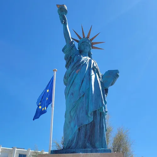 Statúin de la Liberté af Soulac-sur-Mer er minni útgáfa af Frelsisvirðingunni, staðsett í heillandi bænum Soulac-sur-Mer í suðvesturhluta Frakklands. Afhjúpuð árið 1980, stendur þetta bronsafrit um 2,5 metra hátt og býður einstaka evrópska snúning við táknið ameríska tákn. Statúan er staðsett nálægt Basilique Notre-Dame-de-la-fin-des-Terres, sem bætir sögulegu samhengi við heimsókn þína. Hentar frábærlega fyrir ljósmyndafara og sameinar ríkulega sögulega arkitektúr og strandlandsbylgi. Fangaðu hina einstöku samsetningu Frelsis á bakgrunni þessa sjarmerandi, fallega bæjar. Vertu viss um að heimsækja á gullna stund fyrir bestu ljósskilyrði.