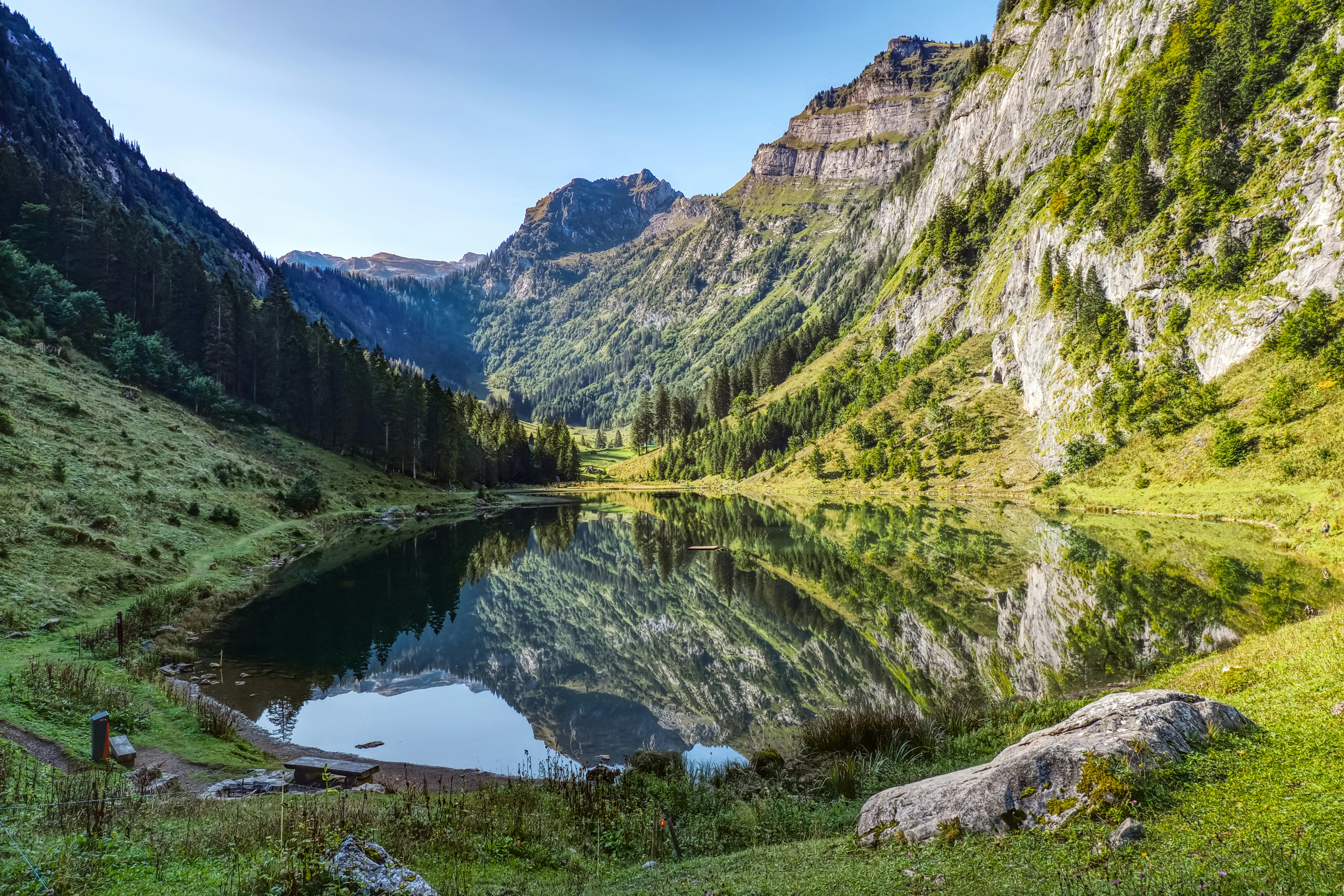 Talalpsee-vatn er stórkostlegt alpvattn staðsett í Glarus Nord, Sviss. Þetta fallega vatn er eitt af fáum náttúrulegum vatnunum í nágrenni, umlukt víðáttumiklum beitum, öflugum fjöllum og fjölbreyttu dýralífi. Glært vatn gerir það að fullkomnum stað til að slaka á og taka myndir af fjallunum. Í kringum vatnið eru flatar göngulög og hjólreiðar fyrir alla stiga. Á hlýrari tímum er hægt að nálgast vatnið með bíl, og bátanámi og kanóráðgjöf gera það að kjörnum dagsferð fyrir fjölskyldur. Náttúruunnendur munu njóta ríkulegs plöntu- og dýralífs.