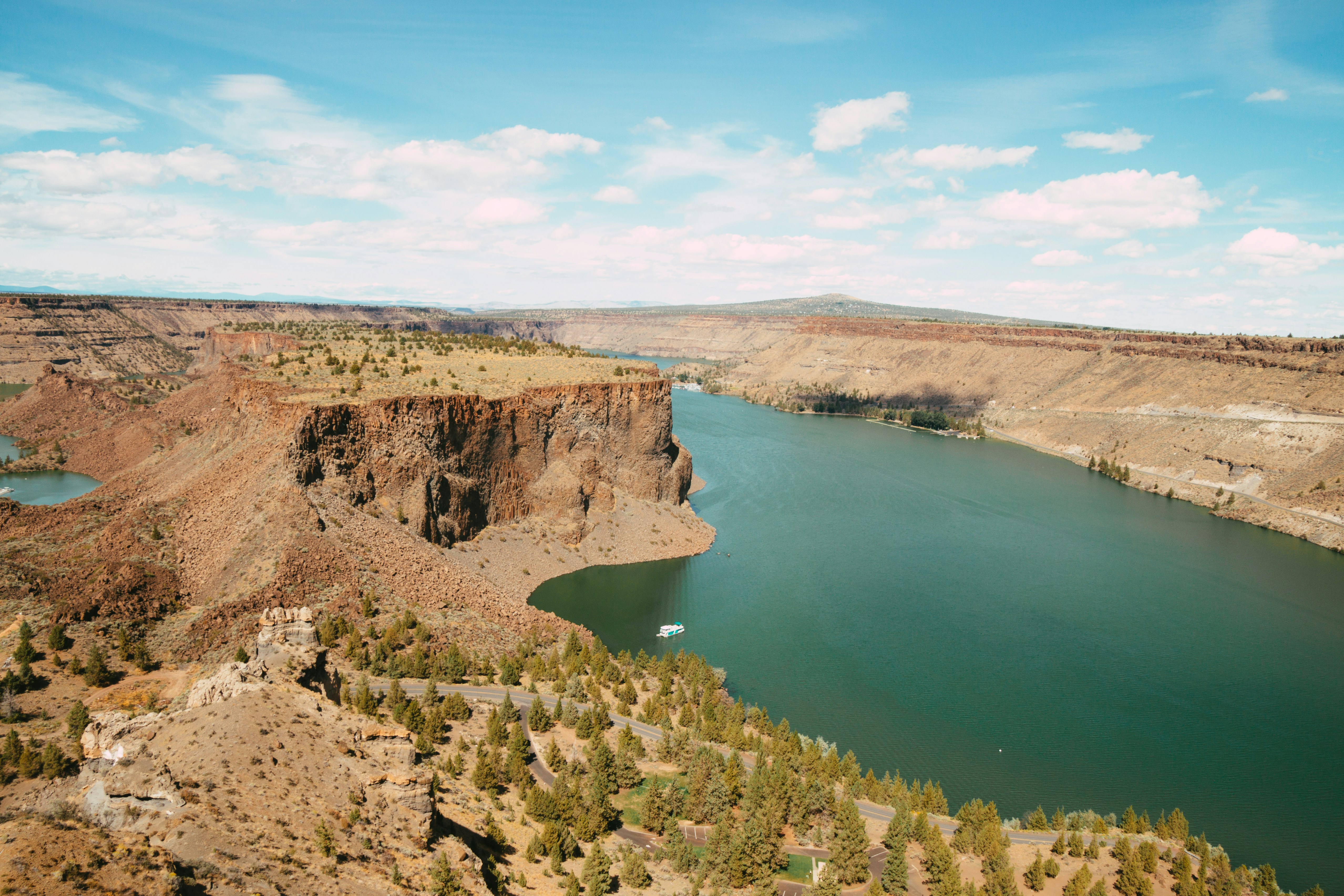 Cove Palisades ríkisgarðurinn er afþreyingarlegsandi áfangastaður staðsettur á háum eyðimerkurflötum mið-Oregon, Deschutes-sýslu. Garðurinn teygir sig yfir um 8.000 akra að mestu óþróuðra há-eyðimerkur svæða og býður fjölbreyttar útivistarleiðir, þar á meðal tjaldsetu, bátareiði, veiðar og gönguferðir. Uppáhaldsatriðið er Deschutes-fljótinn, sem snýr sér um garðinn og býður fallegt útsýni og tækifæri til sunds, vatnsganga og fljóta. Þar að auki má finna háa tindana, hraunbreiði og fjölbreytt dýralíf, sem gerir hann að uppáhaldsstöð ljósmyndara og gesta. Cove Palisades marínan býður einnig tjaldsetu og aðgang að bátahleyfingu fyrir þá sem vilja kanna vatnið. Á meðan garðinum er farið, finna gestir margar sögulegar staðir og menningarleg svæði sem bjóða upp á einstaka könnun á fortíð svæðisins.