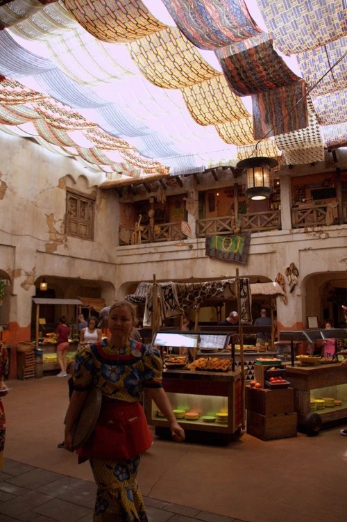 Aðalherbergi Tusker House, staðsett við Bay Lake, er hluti af nýuppfærðri Disney's Animal Kingdom Lodge í Walt Disney World Resort. Þetta er frábær staður til að upplifa dýralíf afrikanska savanna á einstakan hátt. Innandyra geta gestir notið matar með bufet-stíl og á a-la-carte boði með uppáhalds afrískum réttum, auk þess að sjá lifandi frammistöður og staðbundna list. Tusker House er skreytt með litríkum litum, afrískum skurði og fornminjum sem segja sögu hvers svæðis heimsins. Fyrir einstaka og eftirminnilega upplifun, vertu viss um að heimsækja aðalherbergi Tusker House!
