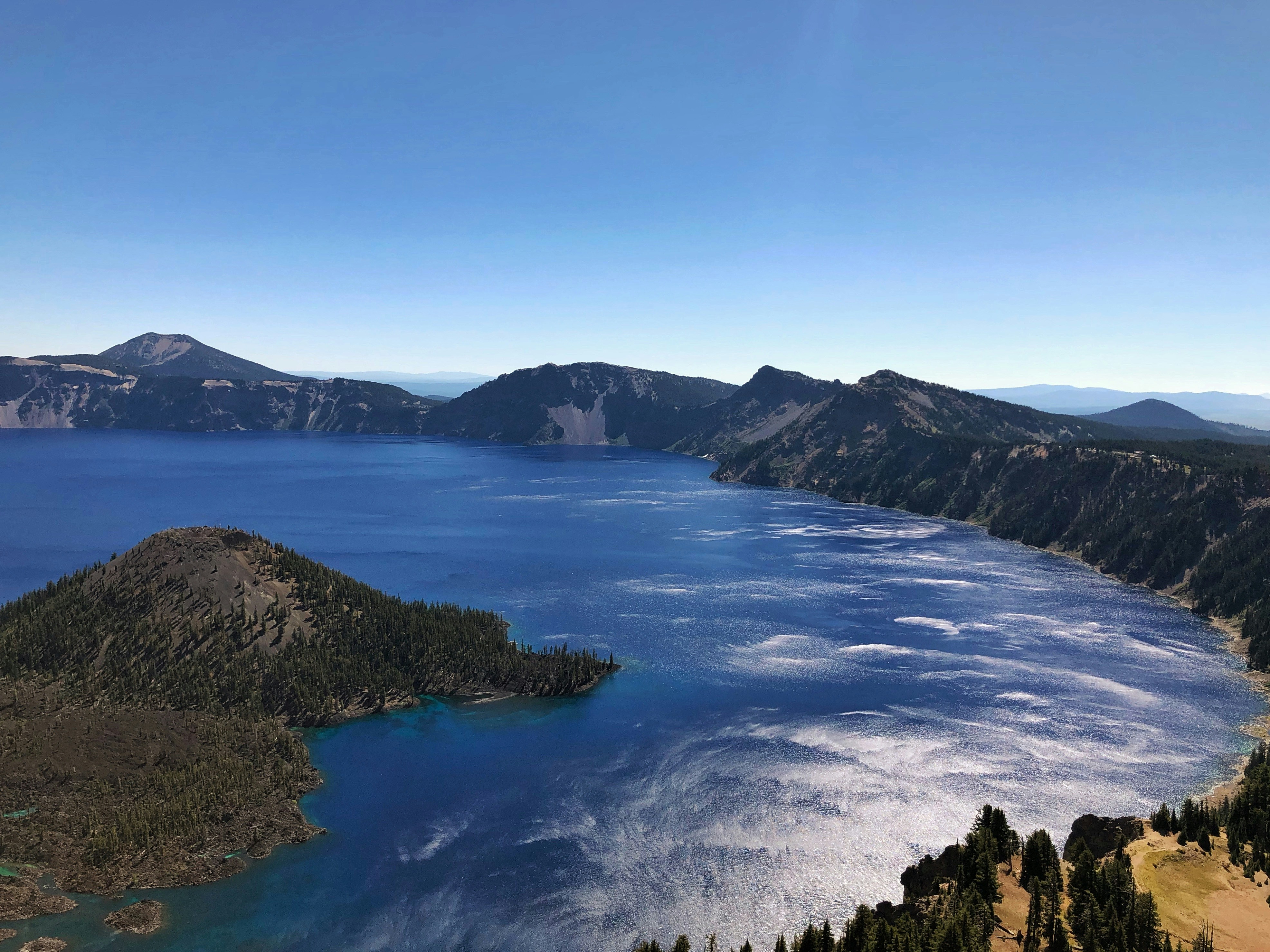 Wizard Island í Crater Lake og gönguleið Watchman Peak munu leiða þig að nokkrum af hrífandi fallegustu útsýnum Bandaríkjanna. Wizard Island er ösku-keilueldgos-eyja í hjarta þjóðgarðsins Crater Lake í Oregon og eitt af þekktustu kennileitum garðsins. Brattir stígar og nokkur hundruð stig leiða upp að toppi Watchman Peak, sem býður upp á víðútsýni yfir vatnið. Frá toppinum sérðu Mt. Thielsen, Mt. Mazama og sjálfa Wizard Island, auk nágrenndar skóga, kletta og engja. Garðurinn býr yfir fjölbreyttu plöntu- og dýralífi, þar á meðal pika, marmötum og gullbreiðum jarðmúsum sem hreyfast um engina. Gönguleið Watchman Peak gerir gestum kleift að njóta náttúrufegurðar garðsins án of mikils mannanna.