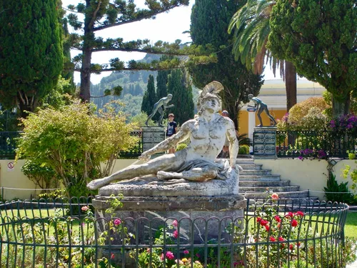 Il Giardino del Palazzo di Achilleion, situato in Achilleio, Grecia, è un punto di osservazione straordinario per catturare la bellezza naturale e l'eleganza classica di Corfù. Progettati come un'elegante fuga, i giardini sono abbelliti con terrazze adornate da statue greche e romane, tra cui spicca il 'Achille Morente'. I foto-viaggiatori apprezzeranno la collocazione strategica delle sculture tra fiori vivaci e flora mediterranea che offrono contrasti drammatici. I giardini offrono viste mozzafiato sul paesaggio rigoglioso di Corfù e sul Mar Ionio, offrendo numerose opportunità per catturare affascinanti scatti al tramonto. Cerca i sentieri intricati e le fontane decorative che aggiungono profondità e interesse alla tua fotografia. Visita la mattina presto per avere la migliore luce e meno folla.