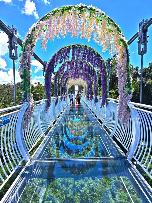 Appeso sopra una rigogliosa vegetazione e il torrente impetuoso Petanu, il Ponte di Vetro Blangsingah a Kemenuh offre un punto di vista audace sui campi di riso terrazzati e le cascate. Il percorso trasparente ti permette di ammirare il paesaggio vibrante sotto i piedi, garantendo un'esperienza emozionante ma sicura. Situato vicino ad altri monumenti, è facile combinare la traversata del ponte con una visita alle Cascate Blangsinga. Arriva presto per evitare la folla e ricorda che il sole tropicale può essere intenso, quindi sono consigliati crema solare e scarpe comode. È previsto un piccolo costo d'ingresso e guide locali sono disponibili per offrire approfondimenti culturali sulle meraviglie naturali della regione.
