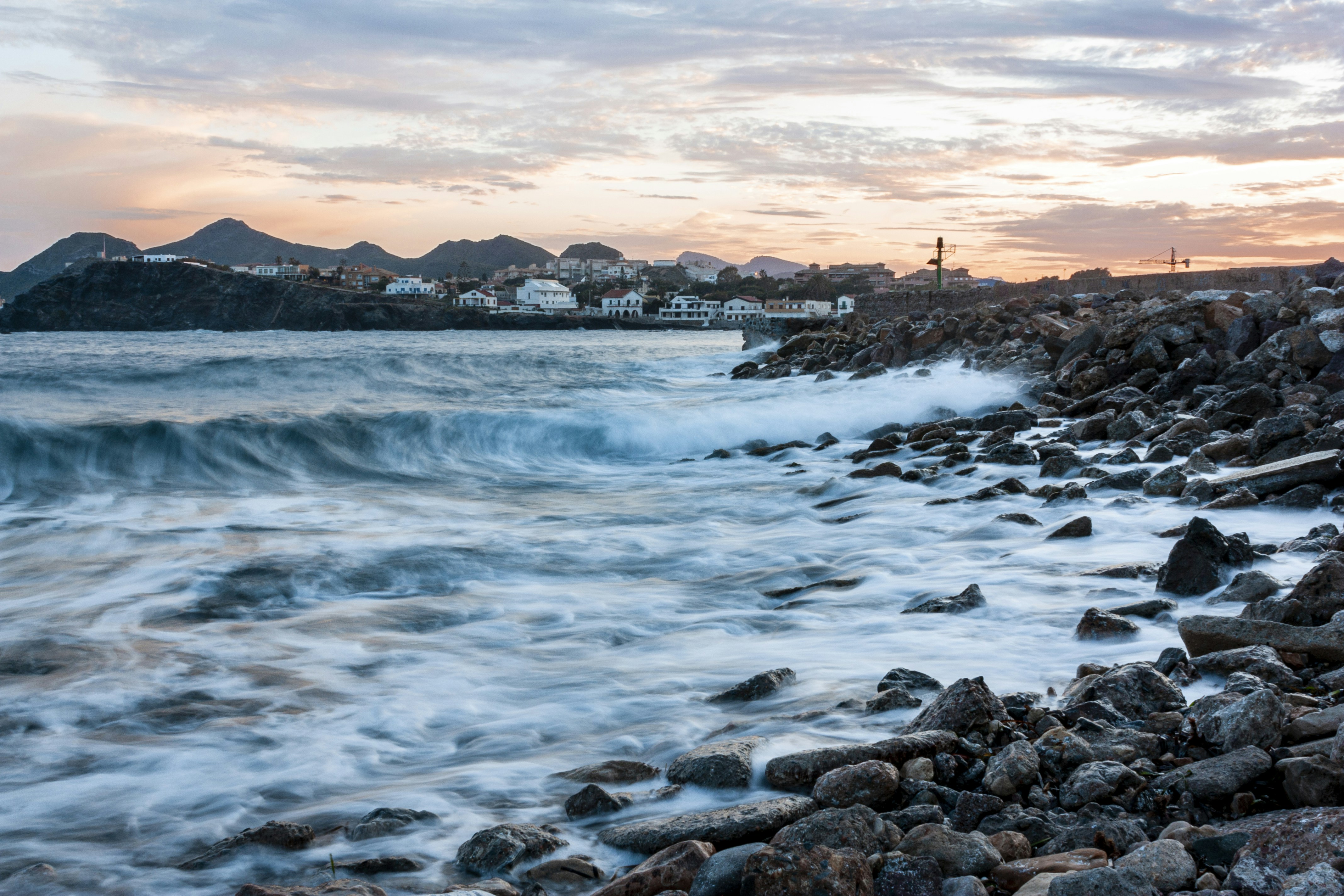 Cabo de Palos, in Cabo de Palos, Spagna, è un incantevole villaggio costiero con uno spettacolare sfondo montuoso. Questo piccolo villaggio di pescatori si trova vicino alla fine della penisola di Cartagena ed è circondato da bellissime spiagge, scogliere rocciose e un'incredibile varietà di fauna selvatica. Tra le attrazioni più amate ci sono una torre di guardia del XVII secolo, un faro, diversi musei e un parco del faro, che offre viste mozzafiato sulla costa circostante. La zona è un paradiso per gli amanti della natura, con una varietà di uccelli locali e fauna terrestre e marina, mentre le acque limpide e blu del Mediterraneo sono popolari tra i subacquei, gli appassionati di snorkeling e i kayakisti. Con una serie di ristoranti e luoghi dove mangiare qualcosa, è una destinazione turistica eccellente. Se vuoi esplorare il lato storico delle cose, ci sono molte antiche rovine interessanti da scoprire.