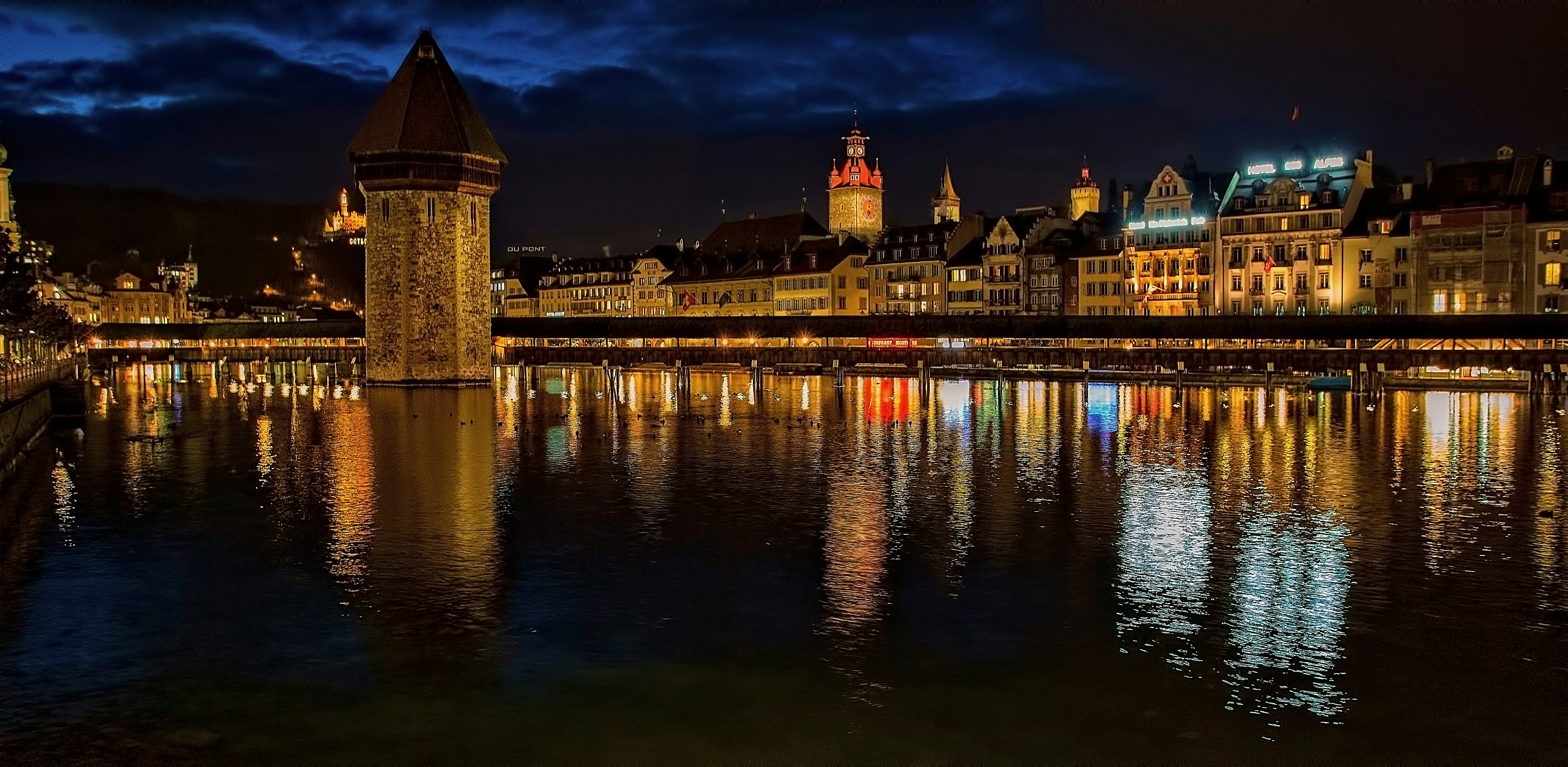 Il Kapellbrücke (Ponte della Cappella) è un ponte pedonale coperto in legno a Lucerna, Svizzera, che attraversa il fiume Reuss. Uno dei ponti in legno più antichi d'Europa, fu costruito nel 1333 ed è famoso per i dipinti di chiese e altre scene storiche che decorano il suo interno. Oltre ad essere un'attrazione culturale, il ponte è un luogo popolare per ammirare la Città Vecchia di Lucerna e il paesaggio alpino circostante. Fai una passeggiata sul ponte e goditi le viste del pittoresco skyline di Lucerna, che include la torre dell'acqua ottagonale e le Alpi, assicurandoti di fermarti ad ammirare i molti dipinti vivaci che decorano il ponte. Il design unico del ponte forma lo sfondo perfetto per una foto affascinante.