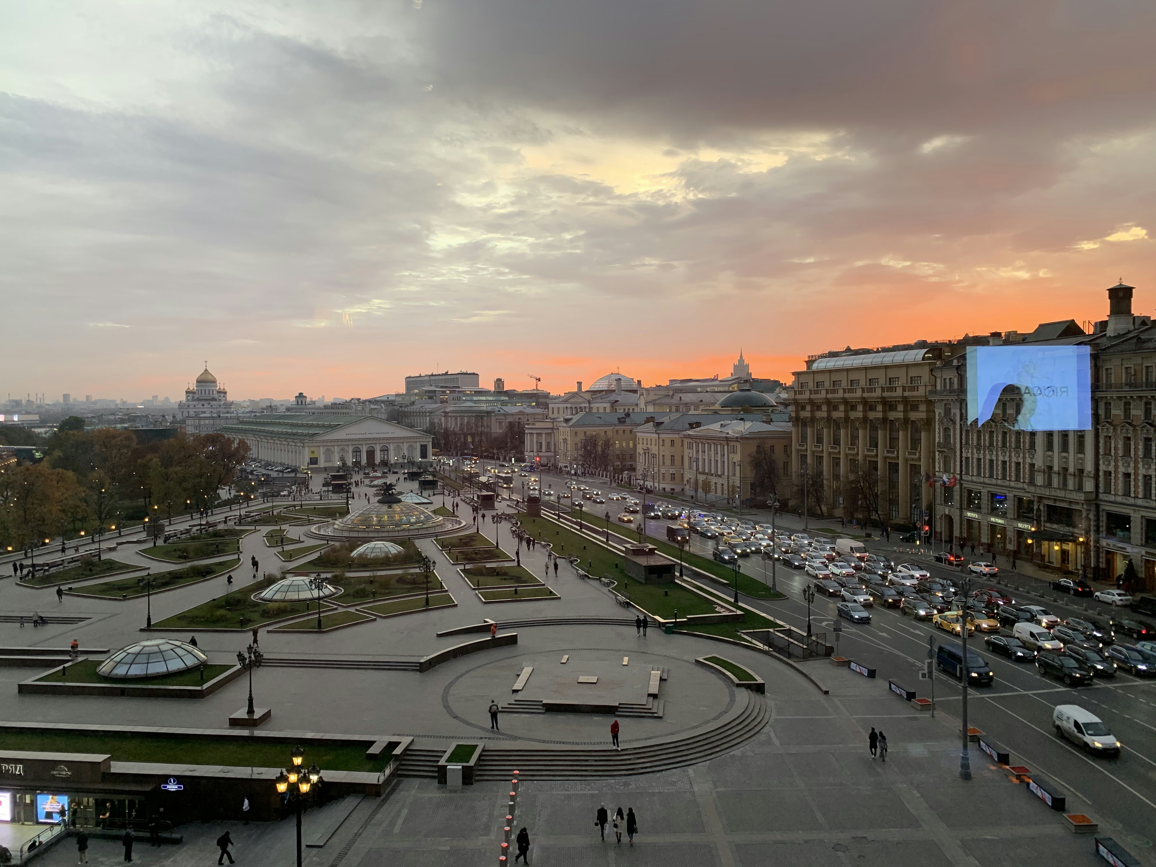 La Fontana dell'Orologio del Mondo, situata nella Piazza Manezhna a Mosca, in Russia, è un'affascinante combinazione di arte e ingegneria. Presenta un design sorprendente con dettagliate fusioni di bronzo che rappresentano i segni zodiacali e figure storiche. La cupola di vetro della fontana non solo offre un effetto visivo accattivante, ma funge anche da tetto per il centro commerciale sotterraneo Okhotny Ryad, offrendo prospettive uniche. Pianifica la tua visita poco prima del tramonto per catturare i riflessi vibranti e l'incantevole bagliore dell'architettura circostante, inclusi il vicino Museo Storico Statale e le torri del Cremlino. Come viaggiatore fotografo, concentrati sui dettagli intricati e sugli effetti dinamici dell'acqua, che possono offrire scatti drammatici.