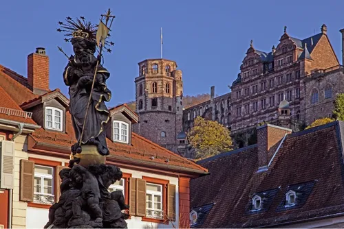 ドイツのハイデルベルクにある鐘楼とコルンマルクトは、この街を訪れるなら必ず見ておきたい場所です。象徴的なハイデルベルク城は丘の上にあり、街の素晴らしい景色を眺めることができます。また、赤い砂岩の鐘楼と下にあるコルンマルクトも必見の名所です。鐘楼はハイデルベルクに現存する中世の建造物の中で最も高く、6階建ての塔は街の象徴的な中心となっています。コルンマルクトは、鐘楼とハイデルベルク城の間にある歴史的な市場広場です。カフェやショップがたくさんあり、のんびり散歩したり、食事や飲み物をちょっと楽しんだりするのに最適な場所です。コルンマルクトの向かいにある絵のように美しいスパガーデンもお見逃しなく。旧市街と川のパノラマビューが楽しめます。