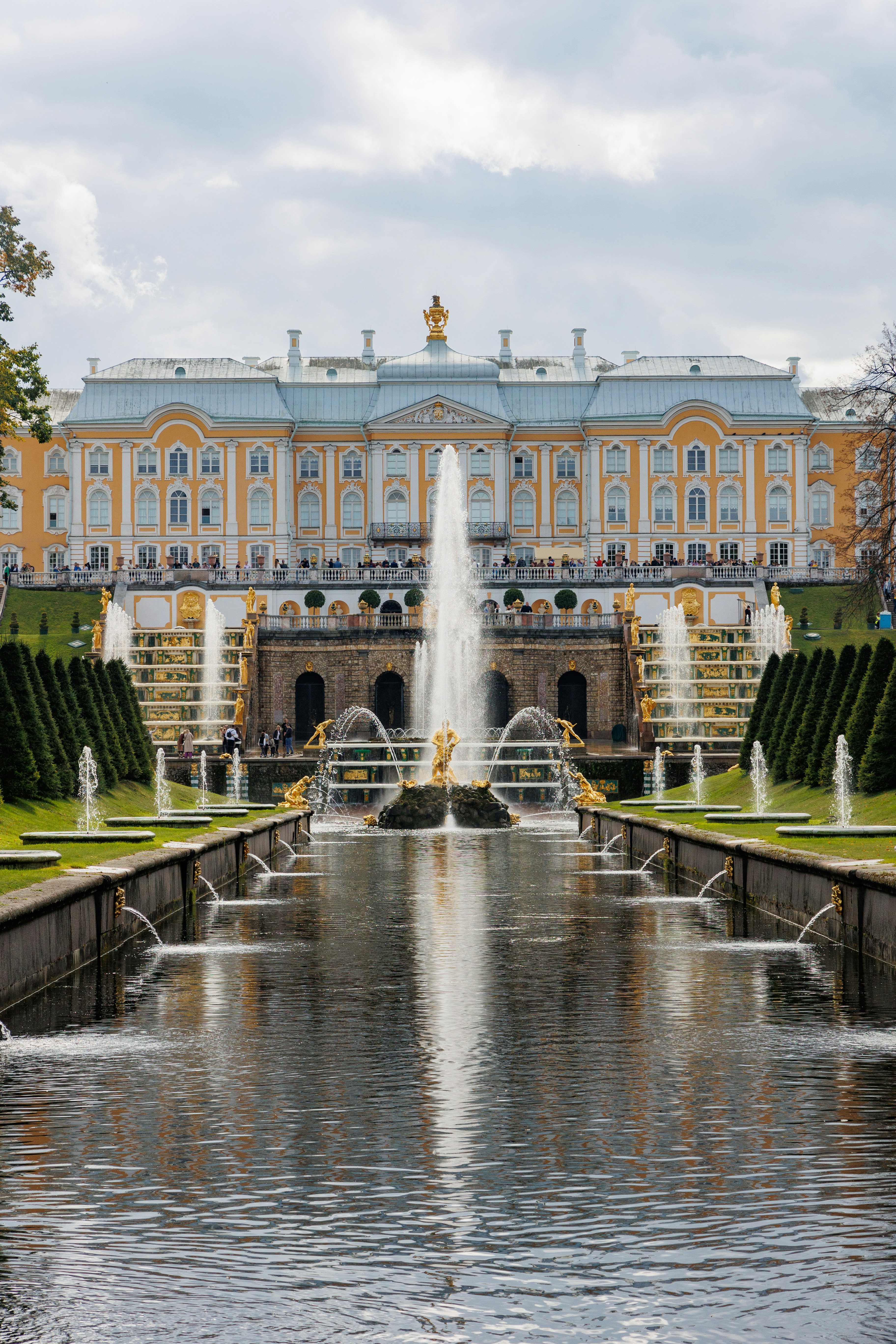 サンクトペテルブルク、ロシアにあるグランドカスケードと橋は、有名なランドマークです。カスケードは上園池と下園池の間に位置し、64段の階段と21の噴水から成ります。カスケードの上に架かる橋は1720年に建設され、ドメニコ・トレッツィーニによって設計されました。公園の主な特徴は、(A)サムソンがライオンの口を裂いている様子と(B)寓意的な人物群を描いた二つの大きな彫像です。公園には、美しい形をした樹木、豊かな植生、ロマンチックなガゼボもあり、この絵のように美しい風景は、多くの思い出に残る写真を撮るための素晴らしい背景を提供しています!