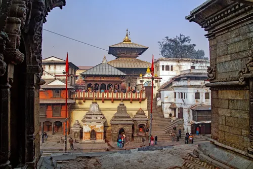 パシュパティナート寺院は、ユネスコ世界遺産に指定されていて、バグマティ川のほとりに広がる寺院、アシュラム、像、碑文の集合体です。メインのパゴダ様式の寺院の金色の尖塔と、精巧に彫られた銀の門は写真家にとっての喜びです。朝と夕方の儀式であるアーラティは、伝統的な音楽と唱和の背景に対して素晴らしい視覚的および精神的なシーンを作り出します。近くの火葬場の台地は、ヒンドゥー教の葬儀の儀式を敬意を持って魅力的に撮影する機会を提供します。高所からの眺望を得るためには、橋を渡って反対岸の森林地帯に行くと良いでしょう。地元の習慣を尊重し、控えめな服装を心掛けてください。