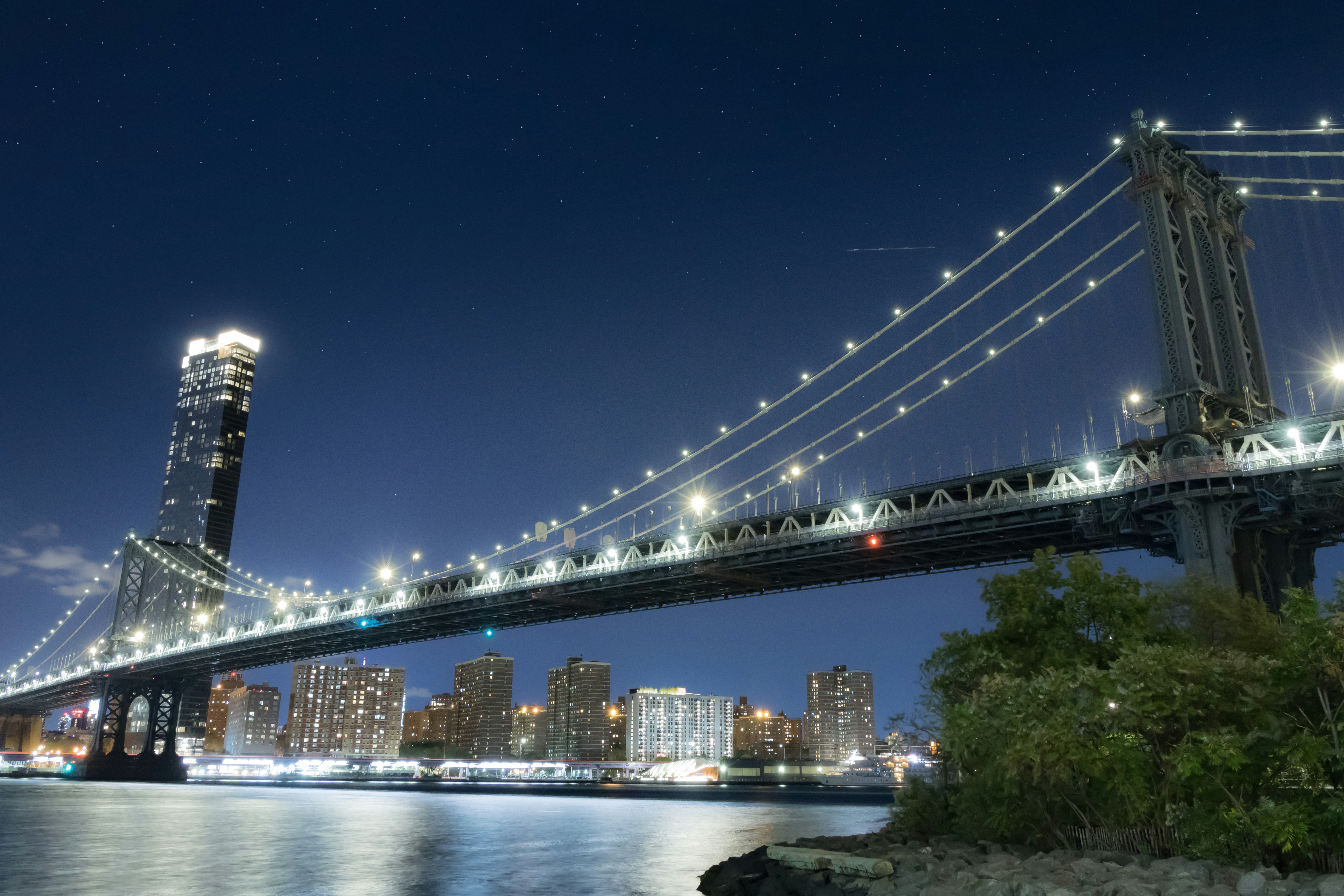 맨해튼 브리지는 세계에서 가장 놀라운 다리 중 하나입니다. 뉴욕시 브루클린에 위치한 이 다리는 이스트 리버를 가로지르며 로어 맨해튼과 브루클린을 연결합니다. 고딕과 아르데코 스타일이 결합된 아름다운 강철 현수교입니다. 다리에는 보행자와 자전거 이용자를 위한 고가 통로와 자동차 전용 통로, 두 개의 산책로가 있습니다. 그 경치는 정말 숨막힐 정도며, 뉴욕 지역을 방문하는 사람이라면 반드시 봐야 할 명소입니다. 다리를 건널 때 맨해튼 스카이라인의 멋진 전경을 감상할 수 있습니다. 덤보(맨해튼 브리지 오버패스 아래)는 브루클린의 활기찬 동네로, 다리의 멋진 사진을 찍기에 완벽한 장소입니다. 브루클린 브리지 파크, 브루클린 하이츠 프로메네이드, 피어 1 또는 이스트 리버 워터프론트에서 훌륭한 사진을 남길 수 있습니다.