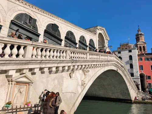 장엄한 건축 명소인 리알토 다리는 그랜드 운하를 가로지르는 4개의 다리 중 가장 오래되었습니다. 1591년에 완공되어, 시내 북적이는 시장들을 더 잘 연결하기 위해 목조 다리를 대체했습니다. 우아한 석재 아치 아래에는 보석, 기념품, 수공예품을 판매하는 상점들이 즐비합니다. 정상에서 운하의 배행과 역사적인 궁전의 외관을 감상할 수 있습니다. 다리는 붐비는 경향이 있어, 아침 일찍이나 저녁 늦게 방문하는 것이 좋습니다. 인근의 유명한 리알토 시장에서는 신선한 농산물과 지역 별미를, 또는 골목길 산책을 통해 숨은 보석들을 발견할 수 있습니다.