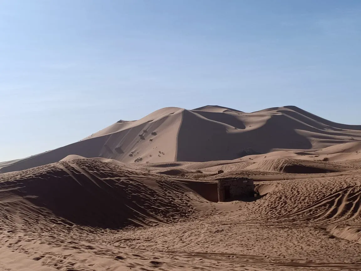 Gran Duna de Merzouga ligt in het uitgestrekte, met tinten doordrenkte landschap van Merzouga, Marokko. Deze torenhoge zandduin, aan de rand van de Sahara, is een ontzagwekkende plek voor zowel reizigers als fotografen. De enorme omvang biedt een prachtig uitzicht op de omliggende woestijn, zover het oog reikt. Voor reizigers die meer van de woestijn willen verkennen, zijn duna's van kleinere omvang en andere oude wonderen vlakbij. Gran Duna de Merzouga, vaak het decor van uitgebreide kameeltochten, is een onvergetelijke bestemming voor iedereen die wil proeven van de exotische schoonheid van Marokko.