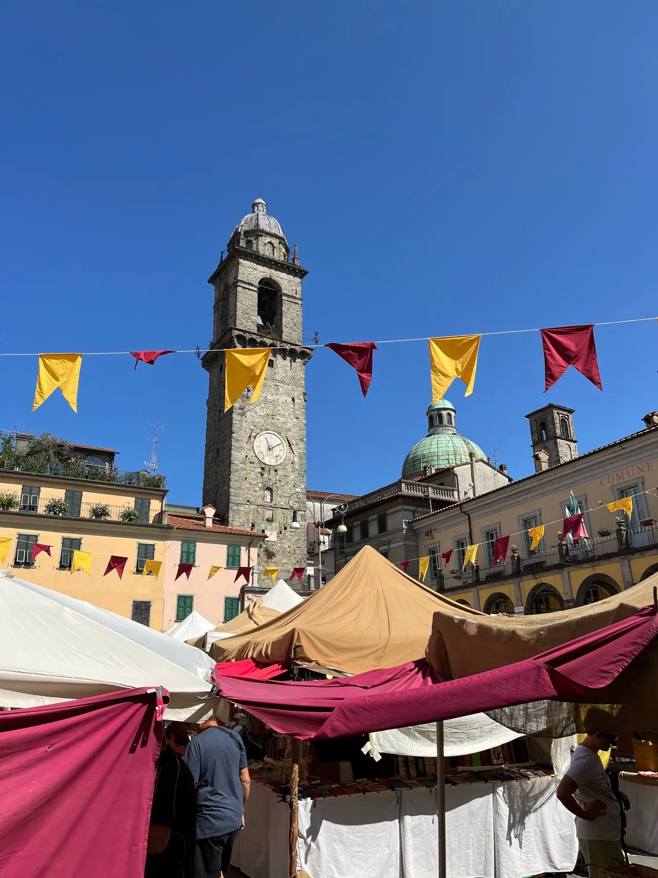 Mercato di Pontremoli, gelegen in de historische stad Pontremoli in Toscane, is een levendige wekelijkse markt die elke woensdag- en zaterdagochtend wordt gehouden. Terwijl je de markt verkent, vind je een schilderachtige mix van lokale producten, waaronder Lunigiana honing en kastanjemeel, perfect om de essentie van de regionale keuken vast te leggen. Fotografen zullen gecharmeerd zijn van de pittoreske setting: kleurrijke kraampjes langs smalle, middeleeuwse straatjes en omgeven door historische gebouwen. Mis de ingewikkelde marmeren barokarchitectuur van de nabijgelegen kathedraal van Santa Maria Assunta niet voor een perfect decor. Vroege aankomsten profiteren van zachter ochtendlicht en kleinere menigten, ideaal om de authentieke sfeer vast te leggen.