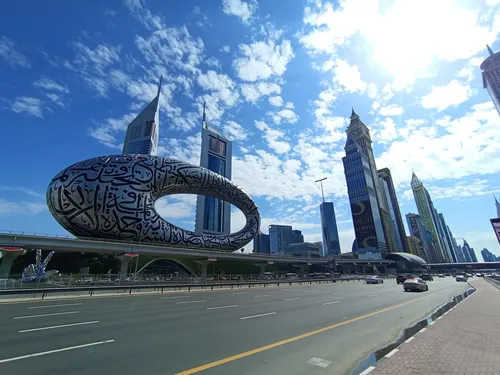 Het Museum van de Toekomst in Dubai is een architectonisch wonder en een baken van innovatie, ontworpen om de mogelijkheden van de toekomst te verkennen. Geopend in februari 2022, staat de opvallende torusvormige structuur, bedekt met Arabische kalligrafie, prominent langs Dubai's Sheikh Zayed Road. Binnenin biedt het museum een meeslepende ervaring met thematische verdiepingen gewijd aan futuristische concepten zoals ruimtevaart, klimaatverandering en kunstmatige intelligentie, waarbij technologieën worden gecombineerd met inspirerende verhalen. Bezoekers kunnen deelnemen aan baanbrekende tentoonstellingen en interactieve installaties die traditionele percepties uitdagen. Het museum is gemakkelijk toegankelijk, gelegen nabij het Financial Centre metrostation, en biedt zowel begeleide als zelfgeleide rondleidingen, waardoor het een must-see is voor iedereen die geïnteresseerd is in de vooruitgangen die ons te wachten staan.