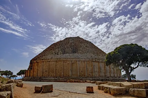 Het Koninklijk Mausoleum van Mauritanië, een oude ronde tombe, biedt fotografiereizigers een unieke mix van Grieks-Romeinse en Numidische architecturale stijlen, met volop mogelijkheden om ingewikkelde ontwerpen en historische grandeur vast te leggen. Het mausoleum staat op een heuveltop en biedt panoramisch uitzicht over het omringende Algerijnse landschap, wat de fotografische ervaring versterkt. Vroeg in de ochtend of laat in de middag zal het licht de gedetailleerde gravures en het steenwerk accentueren. De toegang kan uitdagend zijn; zorg ervoor dat je stevig schoeisel hebt om over het ongelijke terrein te navigeren. De relatief afgelegen locatie betekent minder drukte, ideaal voor ongestoorde fotografiesessies.