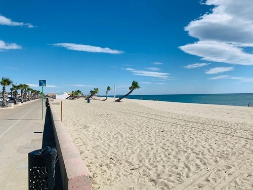Strand le Barcares is een pittoresk lagunestrand gelegen in Le Barcarès, in de regio Languedoc-Roussillon in Frankrijk. Het heeft meer dan zeven kilometer kustlijn, met kalme blauwe lagunes, kleine baaien en witte zandstranden. Er is voor ieder wat wils, met volop activiteiten zoals windsurfen, kitesurfen, waterfietsen en kajakken. Je kunt ontspannen en van de zon genieten, of plezier maken met zwemmen, beachvolleyballen of vissen. Er zijn genoeg verblijfplaatsen met restaurants en bars, wat het tot een populaire vakantiebestemming maakt. Natuurliefhebbers zullen genieten van de overvloed aan zeevogels, waaronder reigers en flamingo's, en er is een natuurreservaat in de buurt met wandelpaden die perfect zijn om te verkennen.