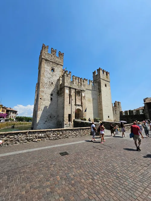 Castello Scaligero di Sirmione, w Sirmione, Włochy, to trzynastowieczna twierdza otoczona wodami jeziora Garda. Ten malowniczy zamek oferuje wspaniałe możliwości robienia zdjęć, szczególnie dzięki oszałamiającym widokom na przystań i imponującym krenażowym murom. Fotografowie docenią niepowtarzalną perspektywę wejścia przez most zwodzony i rozległe widoki z powietrza z wieży, które ukazują jezioro i otaczający je półwysep. Fosa i wewnętrzne dziedzińce stanowią czarujące, mniej oblegane przez turystów miejsca do uchwycenia średniowiecznego klimatu. Wczesnoporanne lub późnopopołudniowe światło może podkreślić tekstury i cienie, sprawiając, że Twoje zdjęcia będą bardziej uderzające.