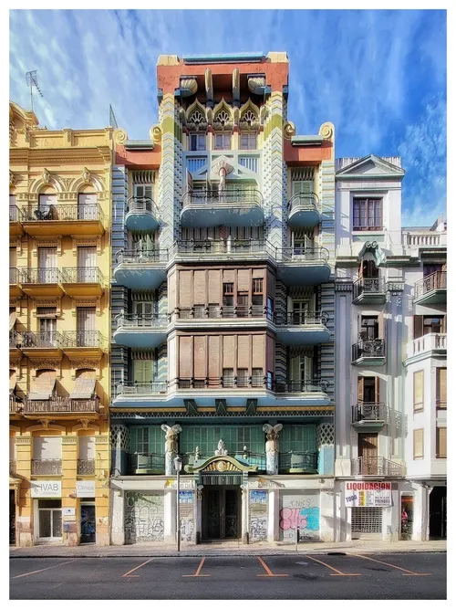 Budynek „Casa Judía” to intrygujący punkt architektoniczny w pobliżu Estació del Nord w Walencji, łatwo rozpoznawalny dzięki żywym kolorom i ozdobnym detalom. Zbudowany na początku XX wieku, płynnie łączy style Art Deco, mauretański oraz modernistyczny, tworząc zachwycającą fasadę wyróżniającą się spośród sąsiednich budynków. Nazwa „Casa Judía” pochodzi od subtelnie wkomponowanych motywów Gwiazdy Dawida, nadając budynkowi unikalny kulturowy charakter. Choć nie są organizowane wycieczki z przewodnikiem, jego zewnętrzna część stanowi idealną okazję do zrobienia zdjęć. W pobliżu znajdują się kawiarnie i restauracje, co podkreśla lokalny klimat i czyni to miejsce wartym odwiedzenia podczas pobytu w Walencji.