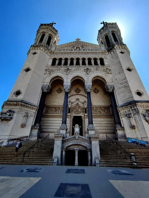 Bazylika Notre-Dame de Fourvière to rzymskokatolicki kościół położony w malowniczej dzielnicy na wzgórzu Fourvière w Lyonie, we Francji. Ten ikoniczny kościół został zbudowany w XIX wieku, od 1872 do 1884 roku, i od tamtej pory stanowi część tożsamości Lyonu. Neo-bizantyjski styl bazyliki jest widowiskowy i wyróżnia się na tle innych okazałych budynków w mieście. Znajduje się ona na najwyższym punkcie miasta, oferując zapierający dech w piersiach panoramiczny widok na cały Lyon. Zwiedzający mogą wejść do środka, aby zobaczyć spektakularne wnętrze z włoskich i francuskich mozaik, witraży, a także innych dzieł sztuki od lokalnych i międzynarodowych artystów. Dostępne są również wycieczki po bazylice, włącznie z poddaszem i wieżami. Niezależnie od tego, czy jesteś turystą, mieszkańcem czy fotografem, Bazylika Notre-Dame de Fourvière z pewnością warto odwiedzić!