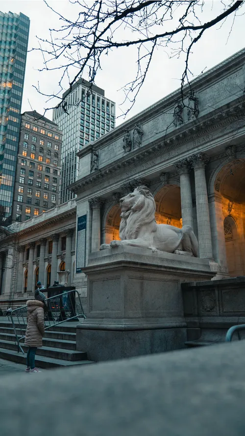 Położony przy Bryant Parku, budynek Stephen A. Schwarzman Nowojorskiej Biblioteki Publicznej to arcydzieło stylu Beaux-Arts z imponującymi marmurowymi schodami, wystawnymi żyrandolami i kultową czytelnią Rose Main Reading Room. Otwarto go w 1911 roku – oferuje darmowy wstęp, wycieczki z przewodnikiem i specjalne wystawy rzadkich książek, rękopisów oraz historycznych artefaktów. Legendarne posągi lwów, nazwane Patience i Fortitude, strzegą wejścia przy Piątej Alei, stanowiąc obowiązkowy punkt do zdjęć. Nie przegap oszałamiających murali, zdobionych sufitów i sklepu z pamiątkami literackimi.