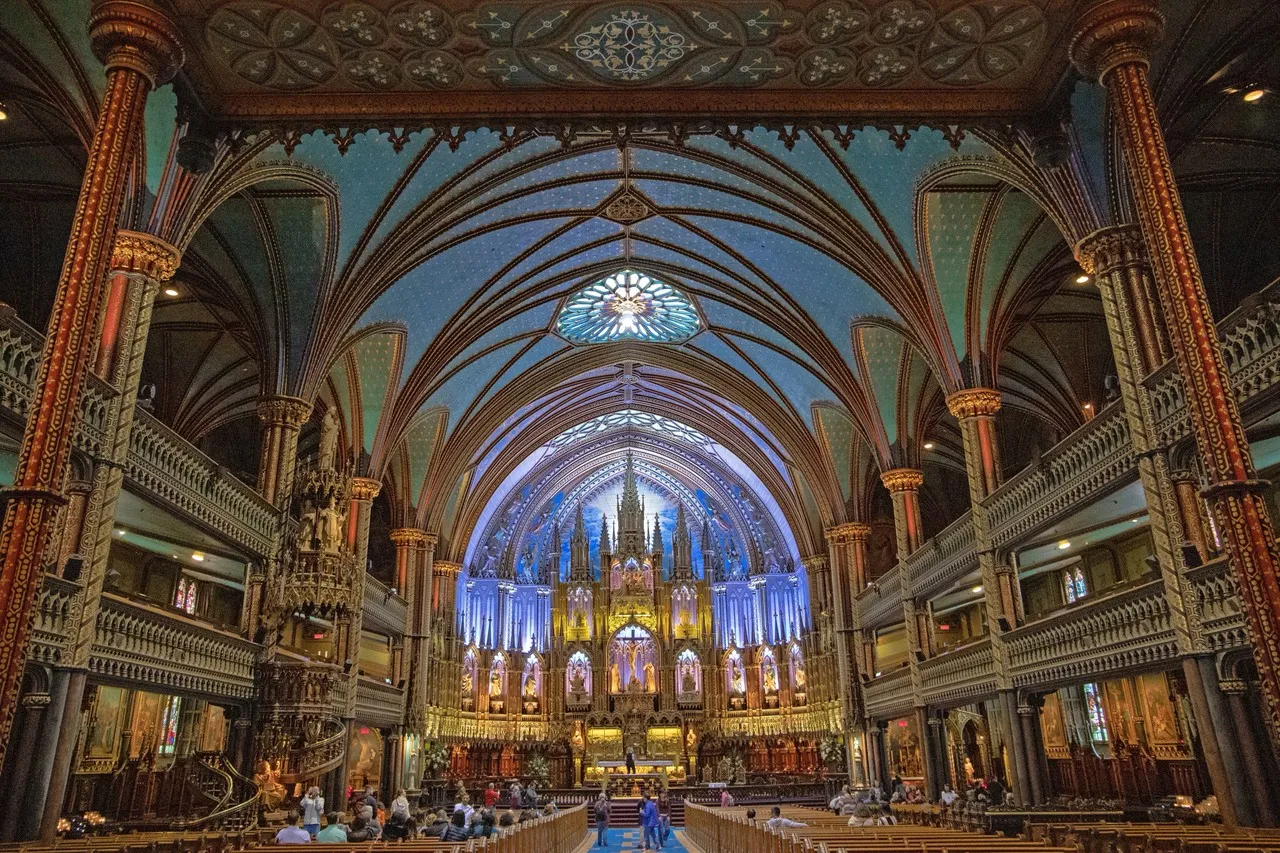 Bazylika Notre-Dame w Montrealu to jeden z najstarszych i najbardziej charakterystycznych zabytków Starego Montrealu. Jest jednym z najwspanialszych przykładów architektury neogotyckiej na świecie. Ta oszałamiająca i majestatyczna bazylika, zbudowana w 1829 roku, jest miejscem kultu religijnego od ponad dwóch stuleci. Jego imponujące wnętrze, obejmujące ponad 12 000 stóp kwadratowych ekstrawaganckiej i misternej dekoracji, to coś, co trzeba zobaczyć, aby uwierzyć. Od głównego wejścia zwiedzający znajdą się w okazałej i pięknej nawie, którą zwieńcza mistrzowsko skonstruowana kopuła. Każdy element bazyliki Notre-Dame został starannie wykonany z najwyższą dbałością o szczegóły. Dzięki oszałamiająco pięknym witrażom, misternym rzeźbom w drewnie i delikatnym obrazom, bazylika ta jest obowiązkowym punktem dla każdego, kto odwiedza Montreal.