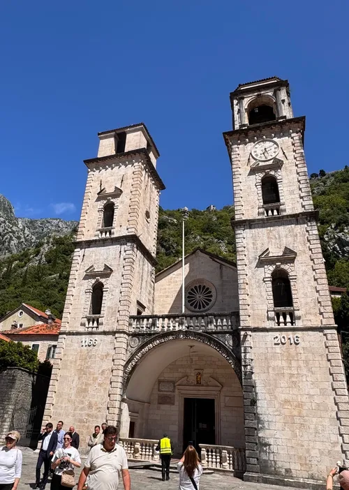Katedra św. Tryfona to wyróżniający się punkt orientacyjny w Kotorze, Czarnogóra, usytuowany w umocnionym starym mieście – wpisanym na listę światowego dziedzictwa UNESCO. Ta rzymskokatolicka katedra, poświęcona św. Tryfonowi, patronowi Kotora, jest jednym z najstarszych i najważniejszych obiektów sakralnych na Adriatyku, z korzeniami sięgającymi 1166 roku. Katedra łączy elementy stylu romańskiego i gotyckiego. Jej fasada zbliżona jest do bliźniaczych wież dzwonniczych odbudowanych po trzęsieniu ziemi w 1667 roku, a wnętrze mieści kolekcję relikwii i fresków, odzwierciedlających średniowieczne bogactwo i duchowość Kotora. Odwiedzający mogą zwiedzić skarbiec z cennymi artefaktami i dokumentami, poznając religijną historię regionu. Katedra jest miejscem lokalnych wydarzeń religijnych i oferuje fascynujący wgląd w kulturowe dziedzictwo Kotora.