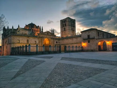 Catedral de Zamora, construída no século XII, é um exemplo notável da arquitetura românica espanhola. Sua cúpula de estilo bizantino repousa sobre um tambor intrincadamente decorado, criando uma silhueta que se tornou símbolo da cidade. Reserve um tempo para admirar as esculturas ornamentadas na fachada principal, juntamente com as influências góticas no coro e nas capelas. No interior, um impressionante retábulo renascentista e um museu repleto de tesouros religiosos aguardam sua visita. Localizada perto do rio Douro, é de fácil acesso a pé, e o bairro histórico ao redor oferece inúmeros cantos pitorescos para descobrir. Aberta o ano todo, embora os horários possam variar conforme os serviços religiosos, então planeje sua visita.