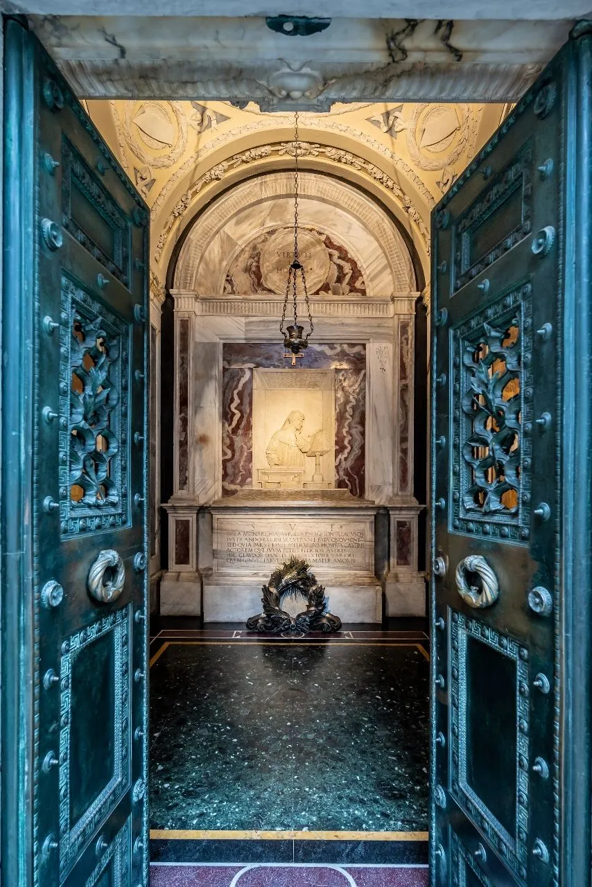 O Túmulo de Dante Alighieri, localizado em uma pequena igreja em Ravenna, Itália, é um lugar que homenageia o poeta mais influente do Renascimento Italiano. A pequena capela, erguida em 1780, abriga os restos mortais de Dante e marca o fim de seu exílio de Florença. A capela tem um design clássico, com um cardo de mármore e um vestíbulo contendo uma inscrição em latim em homenagem a Dante. Dentro da capela, a parede atrás do túmulo é adornada com uma pintura do século XIX, retratando a morte do poeta. O túmulo também é cercado por uma cúpula azul que encobre as paredes, tornando o ambiente ainda mais atmosférico. Hoje, turistas afluem à capela para prestar suas homenagens ao grande poeta. O túmulo está aberto para visitas todos os dias, facilitando para os visitantes passarem algum tempo neste lugar especial.